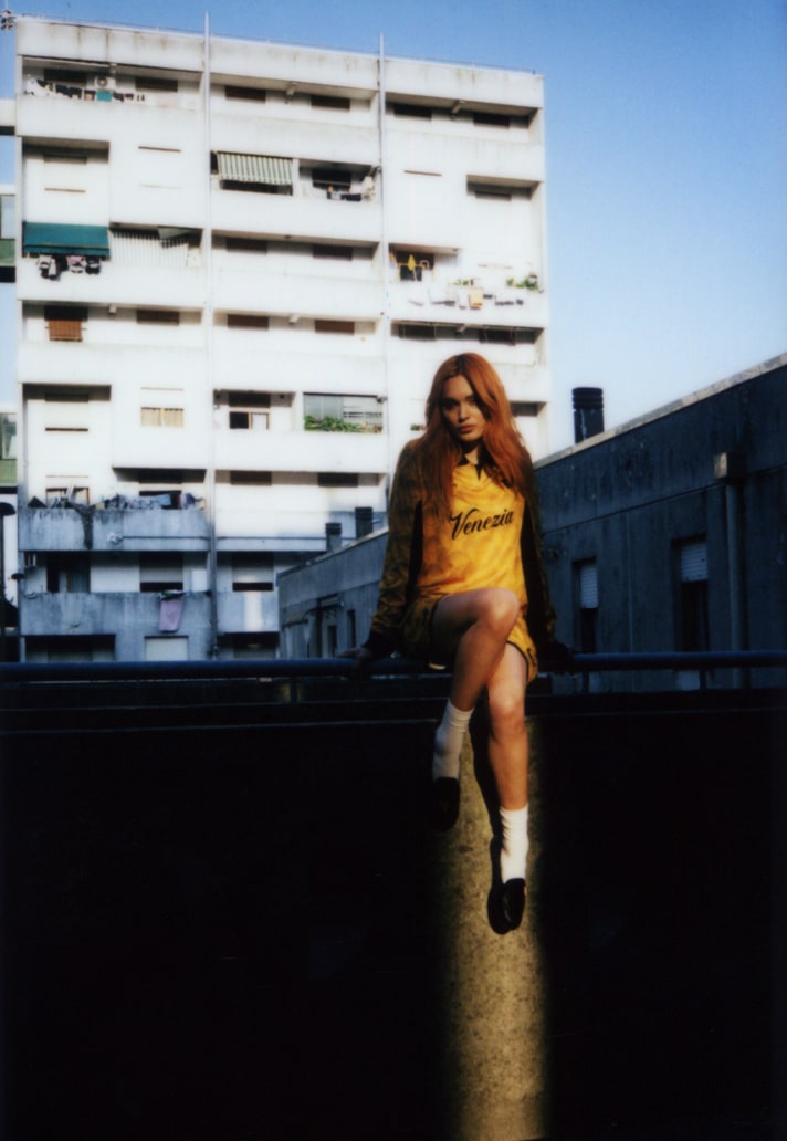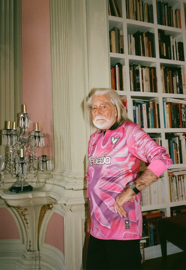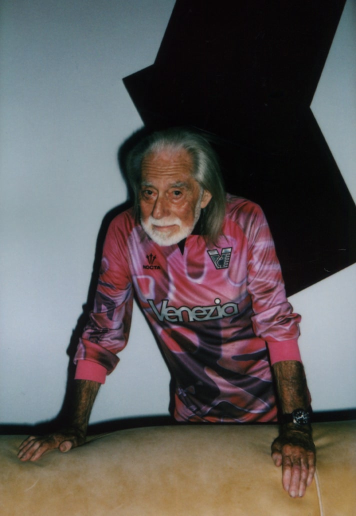 At the heart of the drop is legendary multimedia artist Fabrizio Plessi, a pioneer of video art and one of Venice’s most iconic cultural figures. Shot in front of one of his own works, Plessi embodies the campaign’s core idea: the jersey as canvas, the keeper as performer, the pitch as stage. Around him, poet-painter Solange Smith and contemporary artists Carlo Braidotti, Red Longo, and Diana Hlushach bring further depth, while lifelong supporters keep the connection to the terraces alive. The message is clear — in Venice, art and football speak the same language.