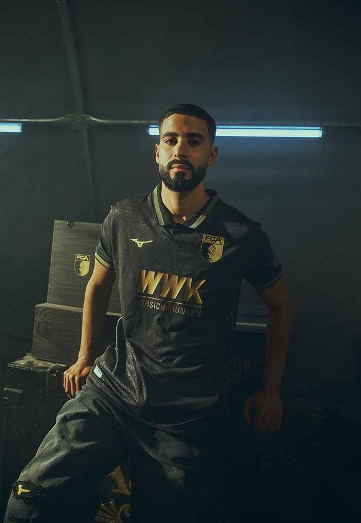 This has got to be one of the cleanest kit drops of the season. Nothing says luxury like black and gold and Mizuno and FC Augsburg have produced exactly that. Somehow it holds both elegance and a sense of danger, almost holding that threat that Augsburg seem to bring to the league. They do their work in the dark. FCA are lining up to be the best dressed in the Bundesliga with this one. Don't get me started on the subtle design patterns that are woven throughout the fabric... just beautiful.
