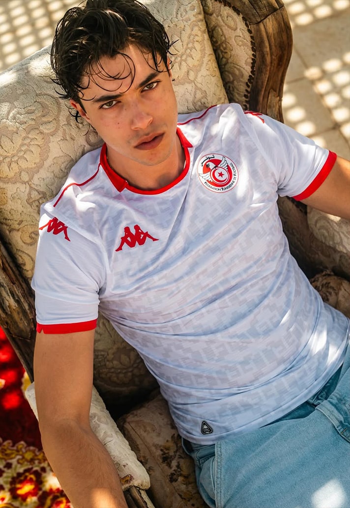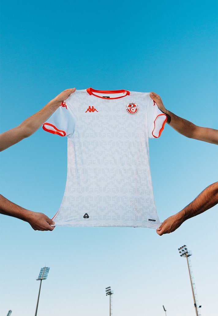 The white away jersey dials up the craft and tradition. Subtle, woven motifs inspired by kilim — the country’s traditional carpets — run through the design, connecting players and fans alike through a shared cultural thread. It’s an exercise in understated elegance: clean, refined, and rich with symbolism about unity, transmission and the artistry of Tunisian life.