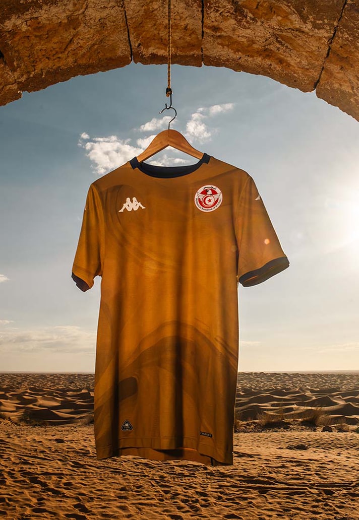 Completing the lineup is the sand third kit, a love letter to Tunisia’s southern expanse. Its warm, earthy tones channel the golden hues of the Sahara, the endless dunes and the fierce serenity of the desert. This is where strength is quiet, resilience is forged, and pride runs deep — qualities mirrored in the Carthage Eagles’ identity.