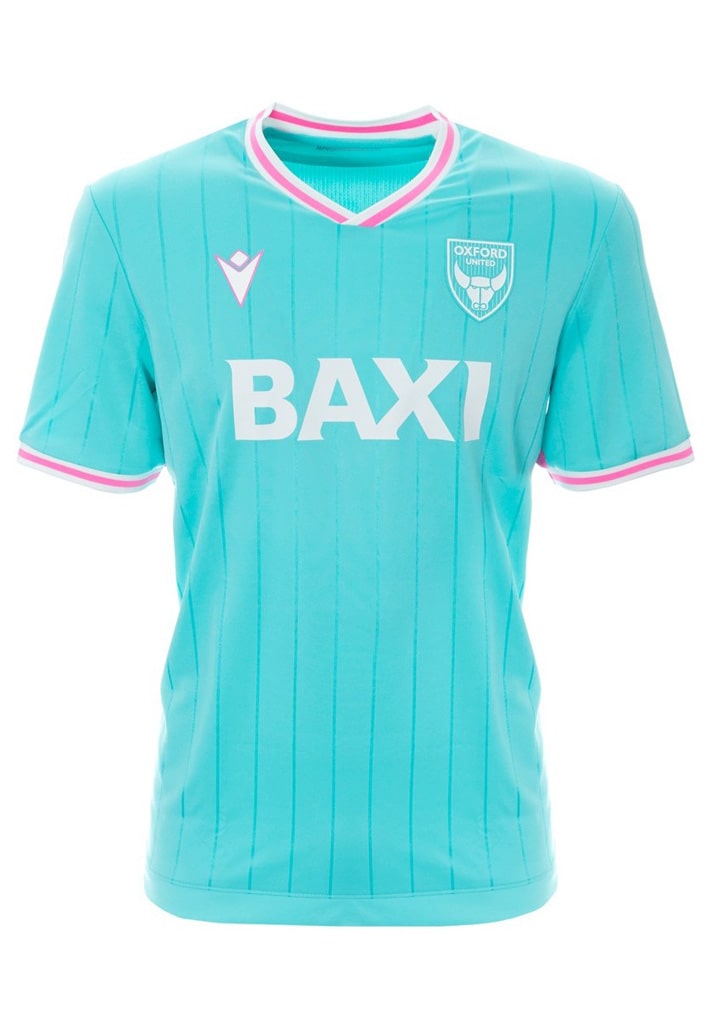 Oxford’s collaboration with Macron first caught attention with that beautifully shot monochrome reveal of the away kit. It made people look twice — and rightly so. The home shirt keeps things sharp and simple, perfectly balanced in its execution. Then the third arrived — sky blue with white and pink detailing on the V-neck and sleeves — adding a touch of flair to round off the collection in style.