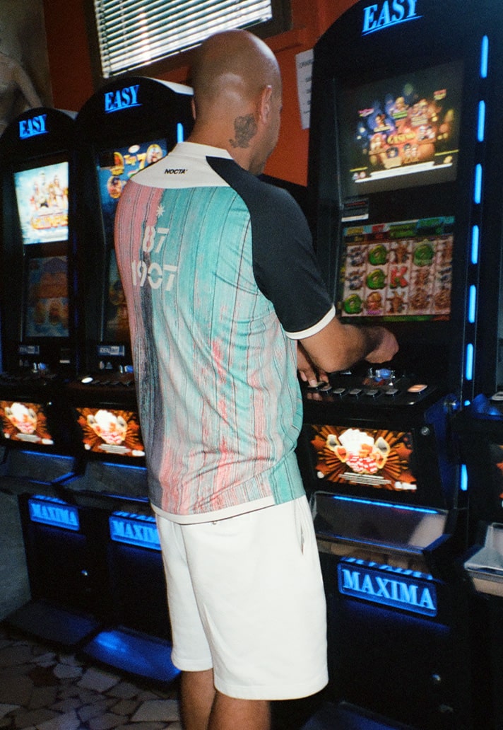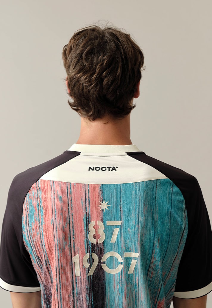 And who could miss the pre-match jersey. The design pulls straight from the textures of the city. The weathered woods, rust tones, and faded colours of the lagoon. The flow of the look is kept clean with black sleeves and ivory accents, whilst the club crest and NOCTA logo hit with intent. On the back of the shirt, the numbers 1907 and 87 honour the club’s roots and legacy.