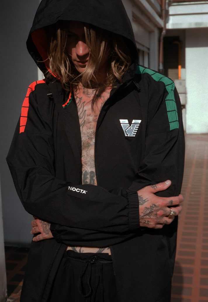 The anthem jackets hit that sweet spot between performance and presence. They are designed to channel identity, unity, and intent. And that’s exactly what these do. The first colourways lands in a stealthy black, cut through with bold orange and green side panels that echo the tones of the classic home kits. Sleek silver lettering features across the back of the shirt making a quiet statement, whilst the NOCTA logo adds that familiar sense of contemporary confidence. It’s functional, of course, but it’s also built to bridge stadium and street.