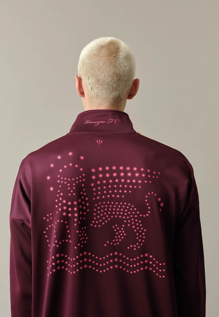 Then there’s the second jacket, which switches up the tone a little. A deep burgundy base, gold detailing, and a flash of orange shoulder tape. It paints a different picture. But the standout feature? The Winged Lion of Saint Mark (the eternal symbol of Venice) has been reimagined as a constellation, inspired to connect Venezia’s legacy with its next chapter.