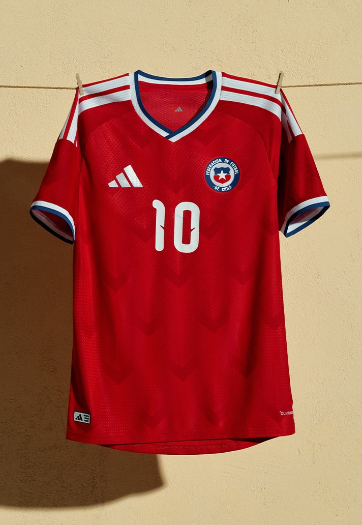 Chile - Chile’s home shirt is a statement of identity. The nation’s iconic bird, the Condor, takes flight across a classic red base, whilst an all over feather inspired pattern brings plenty of motion and texture to the look. A subtly nod to the strength and pride that define La Roga. Once again linking to identity, a bespoke Condor emblem signs off the design on the back of the neck. It’s unmistakeably Chile.