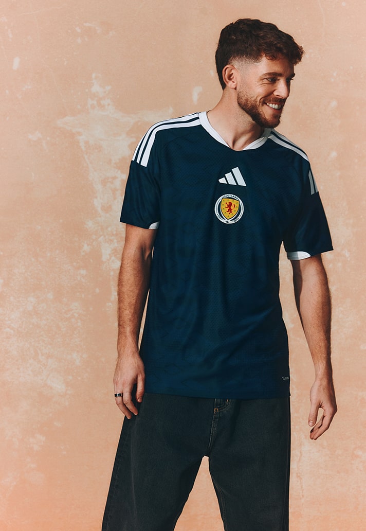 Scotland - Scotland’s home jersey us the saltire front and centre. The nation’s iconic flag has been reworked into a bold, repeating deep blue pattern that runs through the classic navy base. Heritage redefined and a fresh twist on a timeless symbol of Scottish football. The perfect look for Scott Mctominay’s new-found aura.