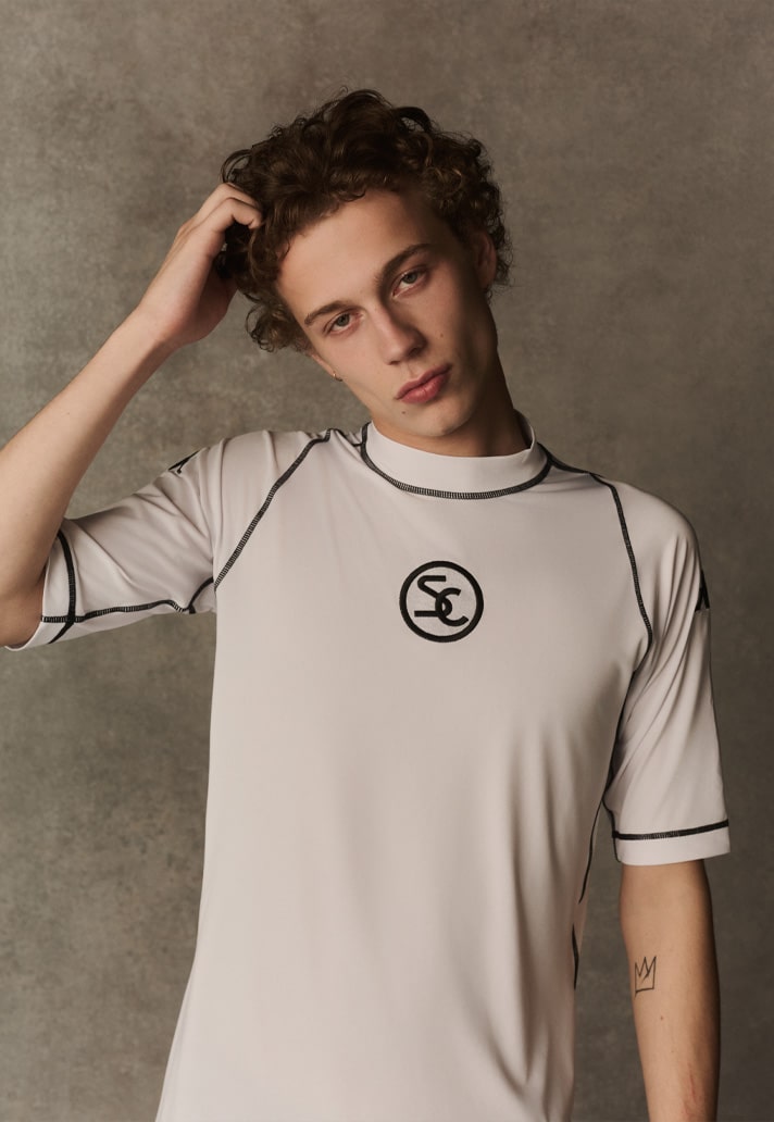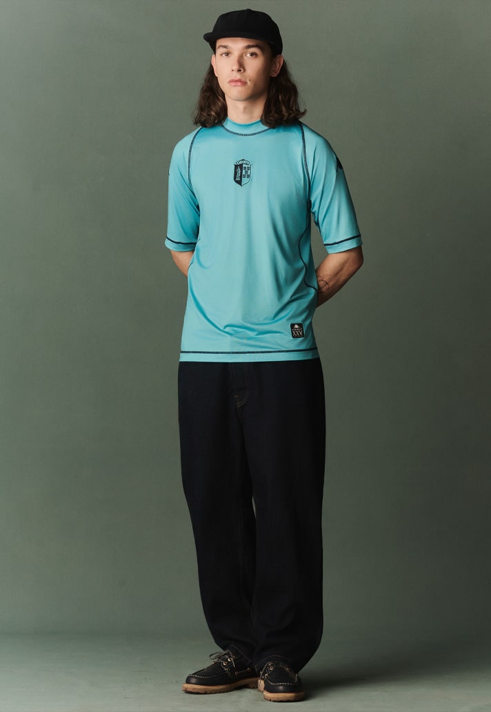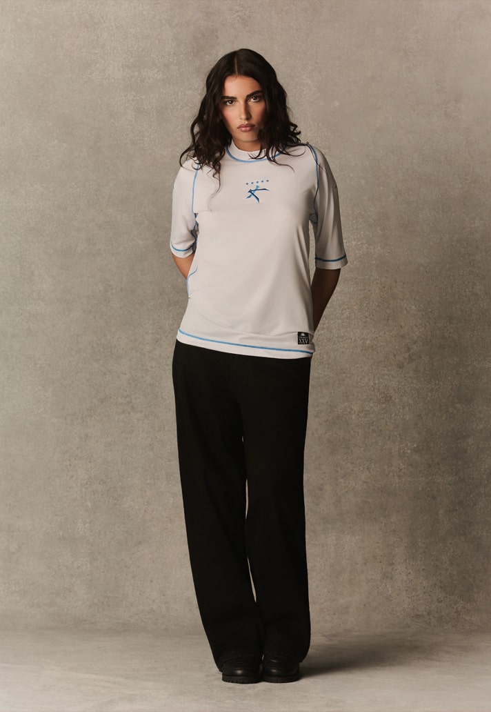 The fit is unmistakably modern Kombat: tight, minimal, and engineered for motion. Built from recycled fibres, lighter than the 2000 original, and carrying that same sense of athletic tension. The kind of shirt that looks fast even on a hanger.