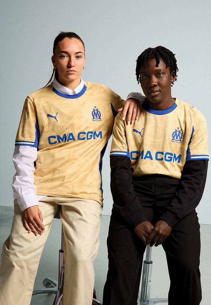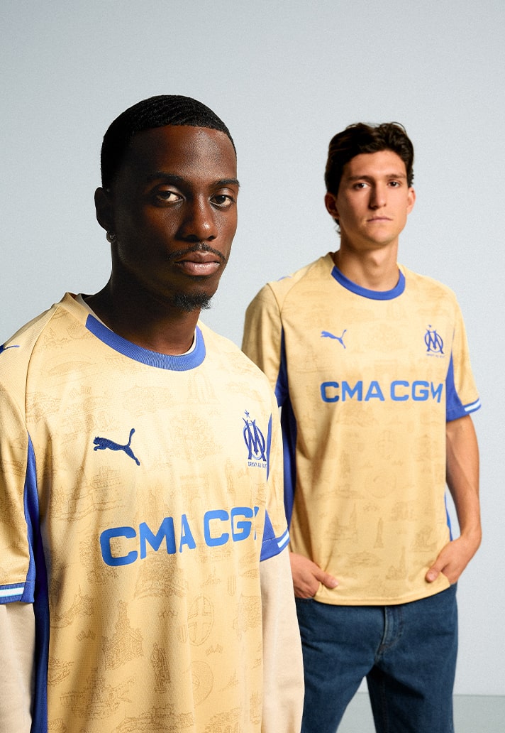 The shirt’s golden isn’t just for its sharp aesthetics, its lifted directly from the hue of Notre-Dame de la Garde – the monument that watches over Marseille from above, also known as la Bonne Mère. For generations, she has been the city’s spiritual anchor, a constant reference point for those who live there and those who leave but never forget. As the landmark prepares to reopen after months of construction, PUMA and OM are channelling that energy into fabric, creating something that reflects the city’s heartbeat.