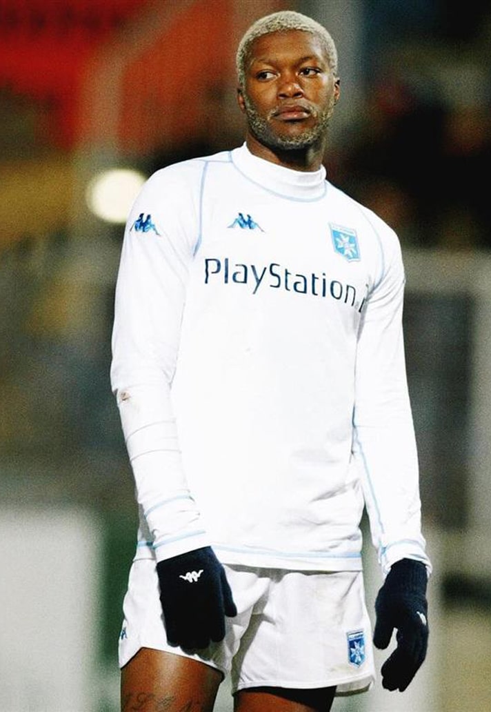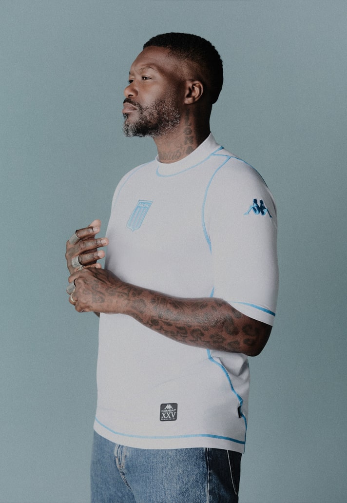 Every great design needs a face, and Kappa’s found the perfect one in Djibril Cissé. The French forward, who once wore the original Kombat for AJ Auxerre, returns as the campaign’s protagonist. Still impossibly stylish, still electric, Cissé embodies the same individuality, energy and flair that defined both his career and Kappa’s creative ethos. In the campaign visuals, he stands centred, shot in monochrome — a portrait of timeless cool. No flair needed, just presence.