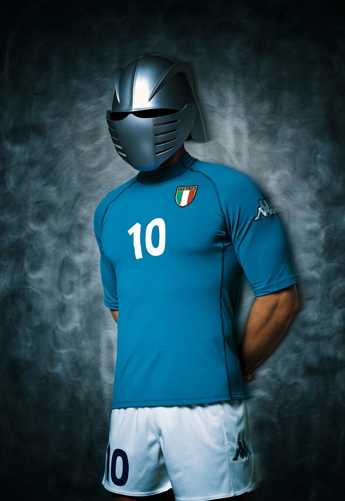 So in 2000, marking a new decade, century and millennium, football changed its skin. This significant shift in shape was heralded by Italian brand Kappa, as they brought the concept to the world’s attention first with Monaco, but then more widely on the floodlit pitches of Belgium and the Netherlands, when Italy took to Euro 2000 in a shirt that seemed to come from another world. Sleek, sculpted, unapologetically tight — Kappa’s Kombat kit stripped away the excess of the nineties and rewrote the rules of what a football shirt could be – gone was the big and baggy fit, leaving a streamlined, performance-driven silhouette.
