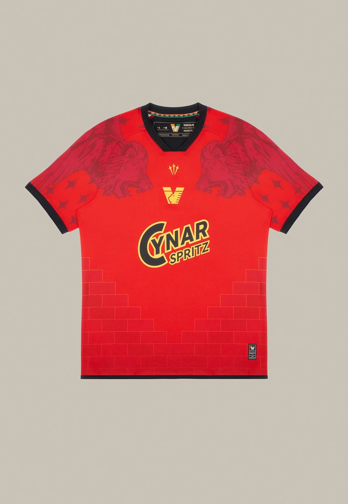 Set to make its competitive debut under the lights of San Siro on 3 December, when Venezia face Inter in the Coppa Italia Frecciarossa, the Venezia 25/26 third shirt already reads like one of the standout drops of the season. Ramberg—whose fingerprints are on some of the most era-defining shirts of the ’90s—comes into the project with a cultural, symbolic, story-first approach that fits Venezia like a glove. His collaborations with Arsenal, Dortmund, and the Azzurri helped shape the visual language of an entire generation; here, he channels that heritage into a design that plays at the intersection of tradition, iconography, and contemporary expression.