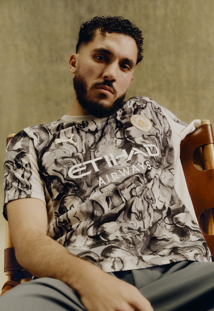 At the heart of the jersey sits hand-drawn Fire Horse artwork, symbolising power, speed and spirit — all traits City fans will recognise instantly. There’s a raw, illustrative quality to the execution, giving the shirt a handcrafted feel that elevates it beyond a standard special edition.