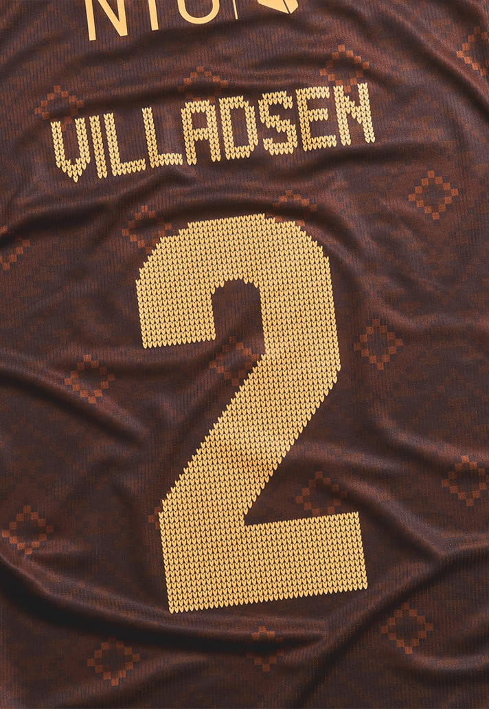 One of the standout touches comes on the back: a unique numbering system that uses a knitted‑style graphic rendered in gold. It mimics the texture and warmth of sweater yarn, adding an almost tactile, fabric‑crafted feel to names and numbers. It’s a detail that instantly elevates the design narrative and underscores the shirt’s lifestyle lean.