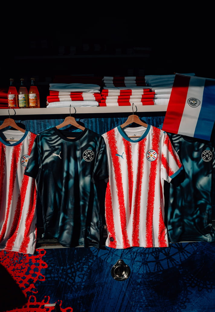 Further examples of this approach can be seen throughout the jerseys for other nations. Paraguay have a meaningful tweak to their home shirt, while their away shirt is a real departure from tradition, introducing a striking and modern design that’s a massive visual contrast to the classic, dusty red and white stripes of the home kit.