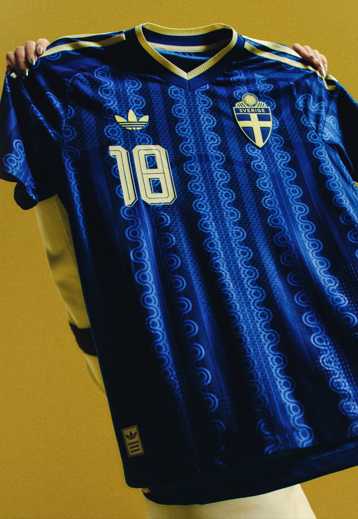 Taking its visual cues and aesthetics from 70s patterns, three different tones of blue come together on Sweden’s away jersey to form a bold, all-over graphic design, a nod to the nation’s rich cultural heritage. With modern typography on the back of the neck reading ‘Sverige’ - or Sweden in English – this retro influence, blended with a contemporary touch, gives the design a fresh look for today’s fans.