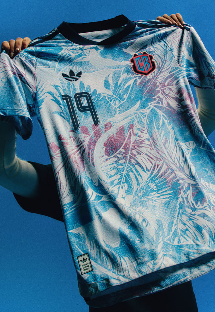 A dynamic all-over blue and fuchsia graphic adorns the Costa Rica away kit, incorporating elements from the iconic Toucan – a bird found in Costa Rica – with leaves from the vast rainforests in which they inhabit. The birds’ vibrant colours and social nature, reflects the nation’s lively, happy and friendly culture – embodied in the phrase ‘Pura Vida’, etched on the back of the neck.