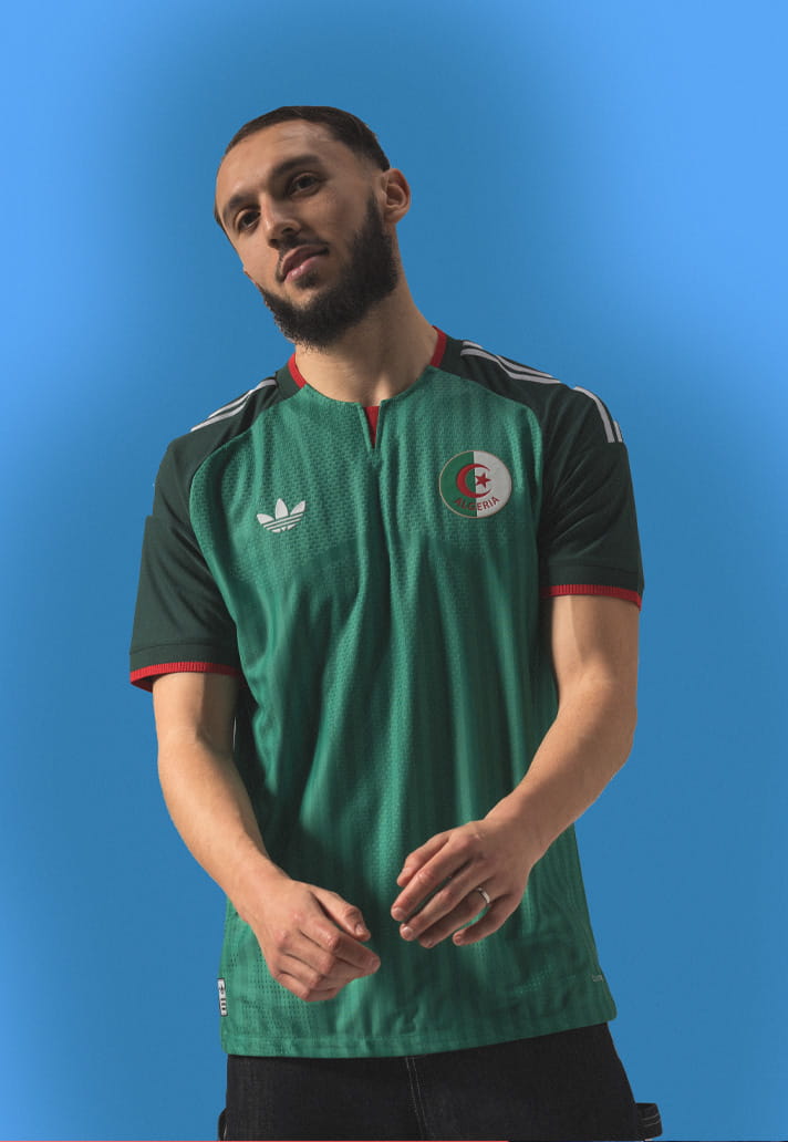 “ALGERIA” is proudly inscribed in Arabic across the back of the neck, connecting the team to their homeland, on their World Cup journey.