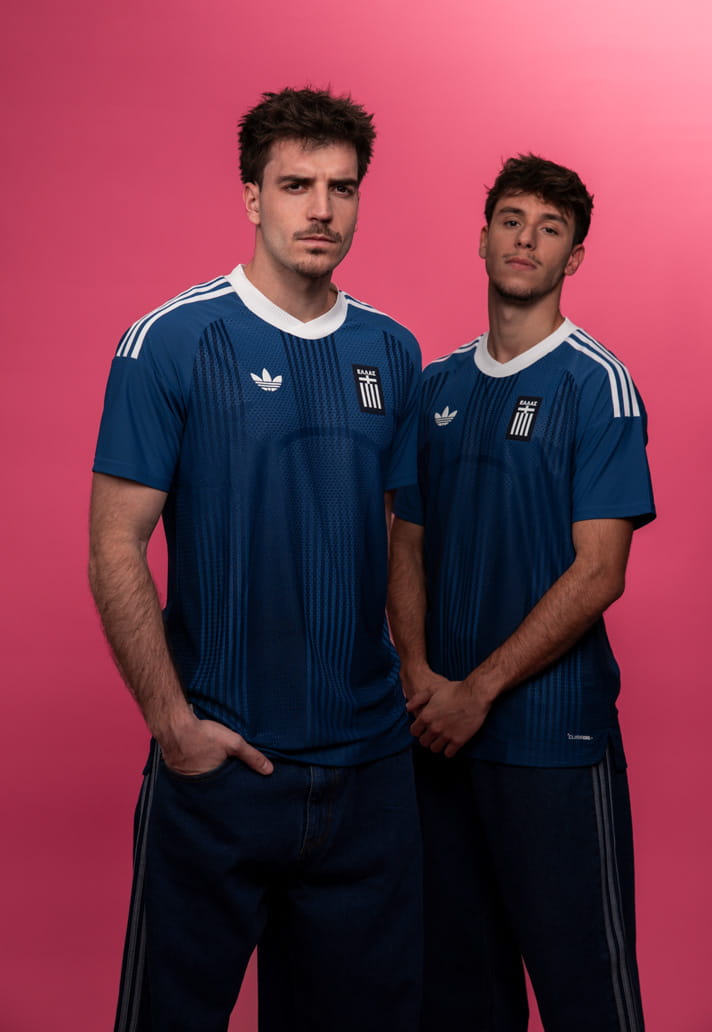 Taking inspiration from the iconic jerseys of the 80s, the away kit features a classic deep-blue look with graphic vertical stripes that gives a subtle nod to the famous pylons prominent in Greek structures, blending Greece’s ancient architectural heritage into a clean, modern football aesthetic. “1926” is inscribed on the back of the neck in Greek, marking the federations centenary.