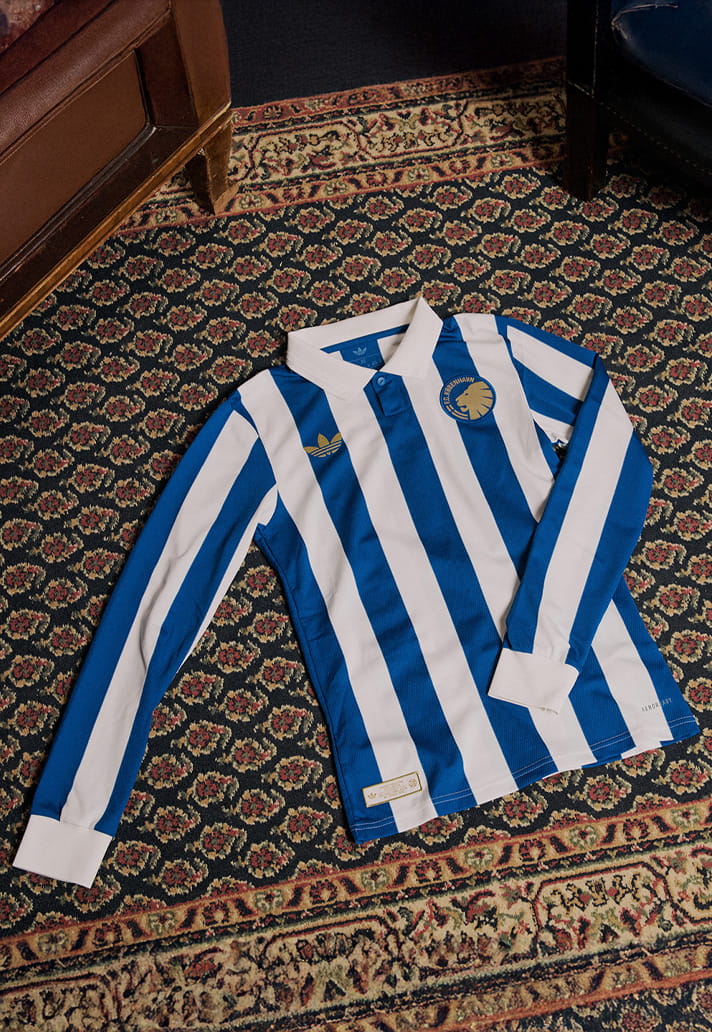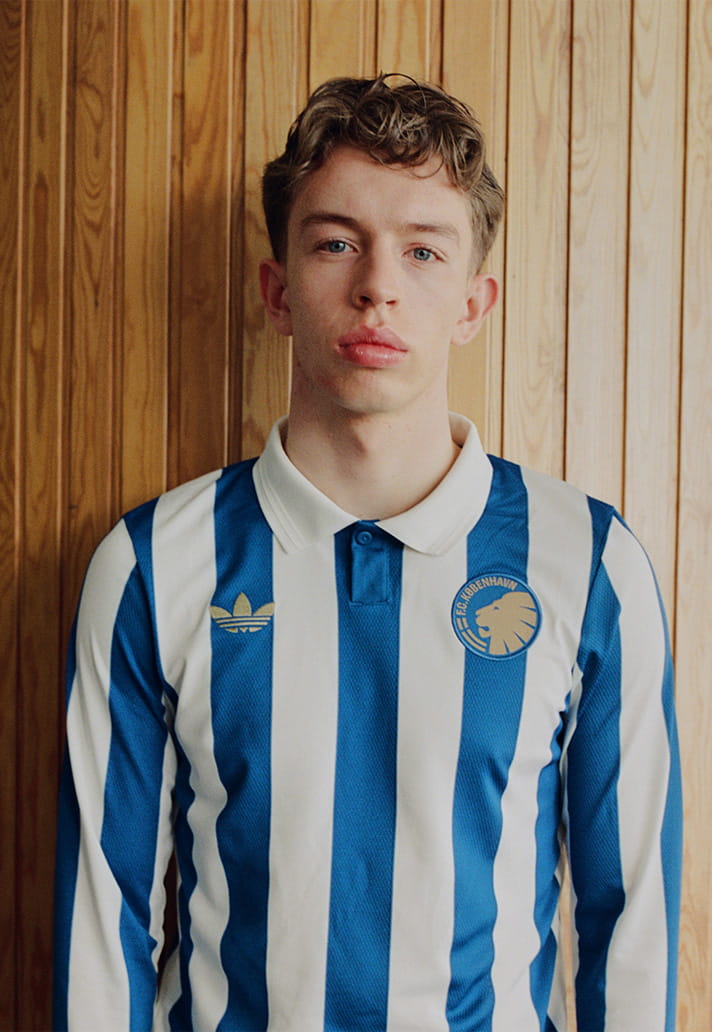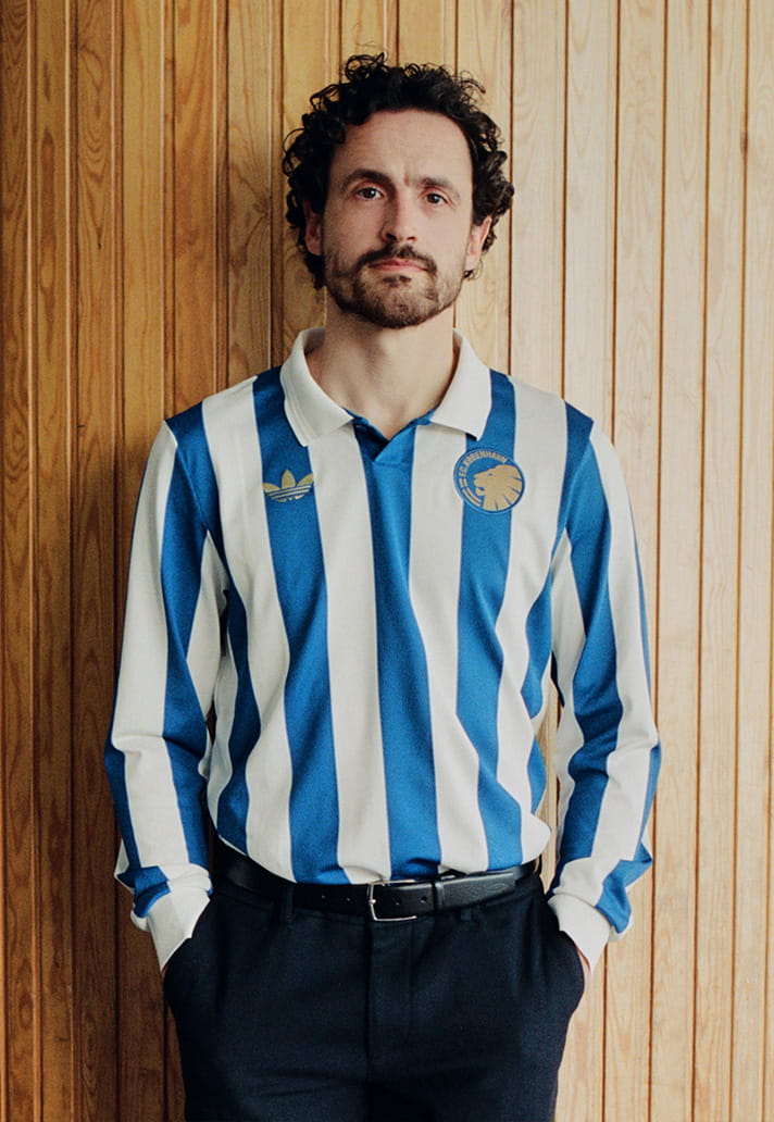 The special edition anniversary jersey designed by adidas, features a classic retro aesthetic, built around KB’s iconic blue and white stripes, colours that continue to define F.C. Copenhagen today: