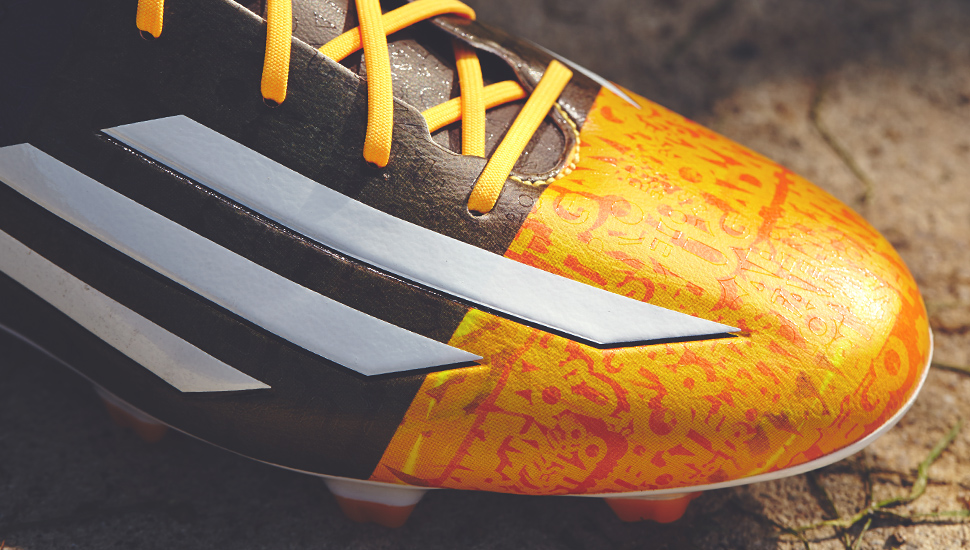 The four-way colour split is something new from adidas (and something some of you might recommend they don't try again) while the all-over print across the upper is carried over from Messi’s previous signature boot. The print is made up of words most associated with Messi including, “Velocidad” (speed), “Balon d’Or” and more obviously, “Messi”. The insole also carries the motto “Más que un Botín” (more than a boot), in recognition of FC Barcelona’s famous club motto, “Més que un club”, while Messi’s signature logo is found on the heel. The adidas f50 adizero Messi “Blaugrana” will be available at selected adidas stockists including Pro-Direct Soccer from Monday 15th September for a bumper price of £175.00.