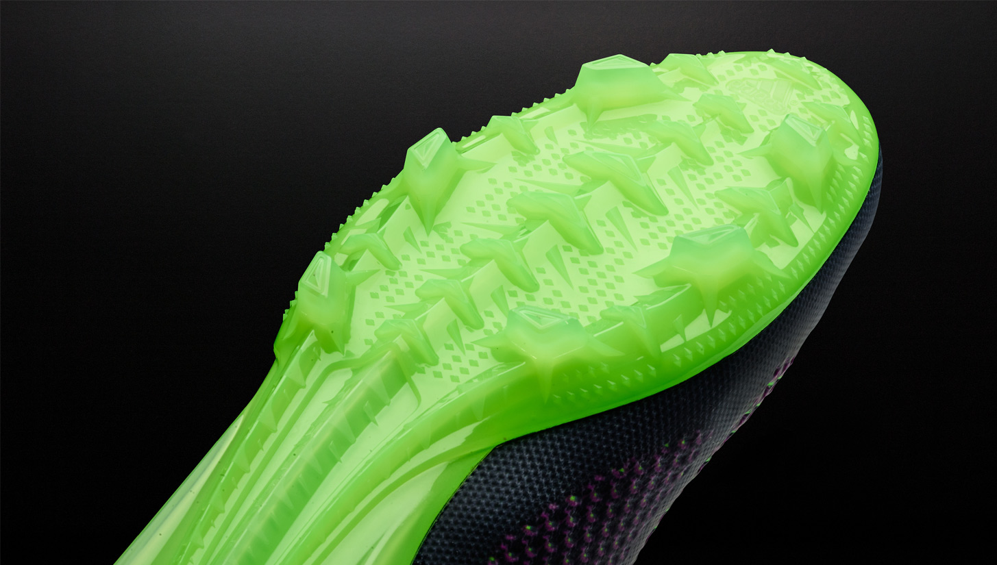 The forefoot contains a knit structure specifically designed to aid control. The control knit structure offers 3D texture that combines ultimate ball control with unrivalled manoeuvrability and traction by way of the f50 adizero outsole.