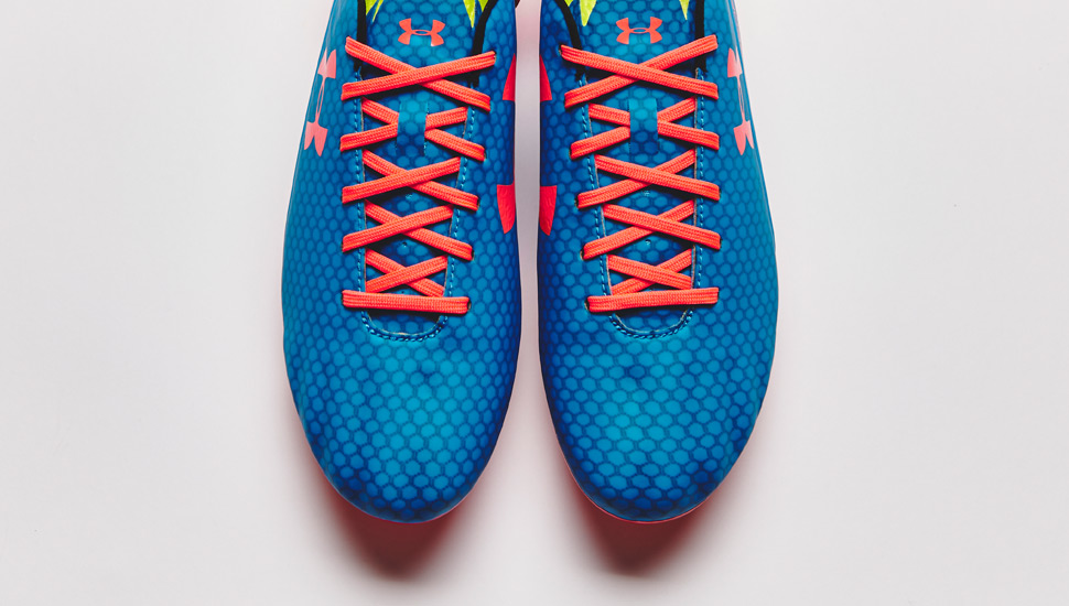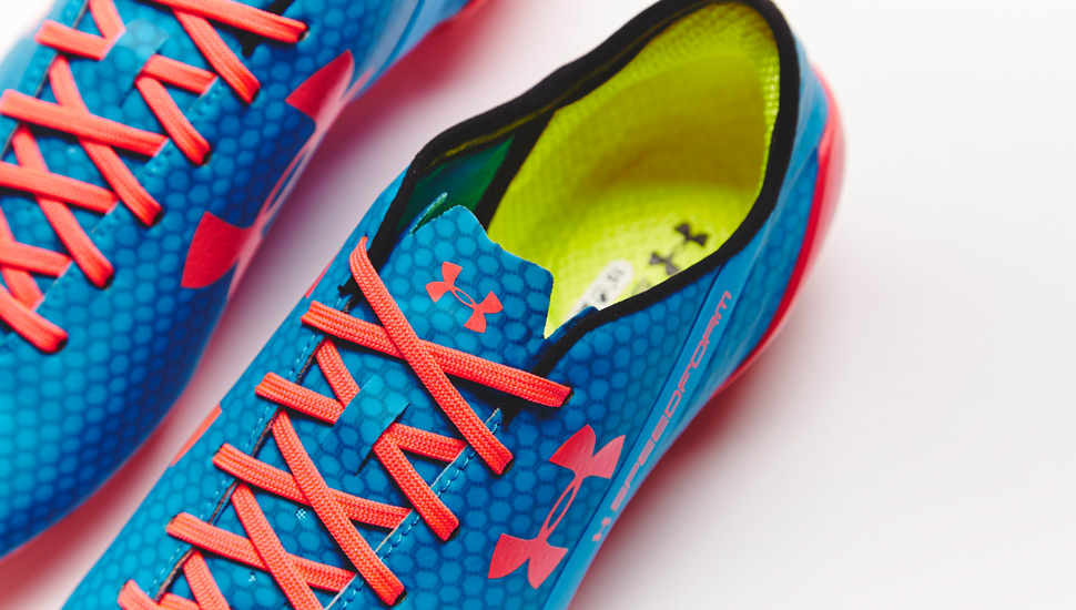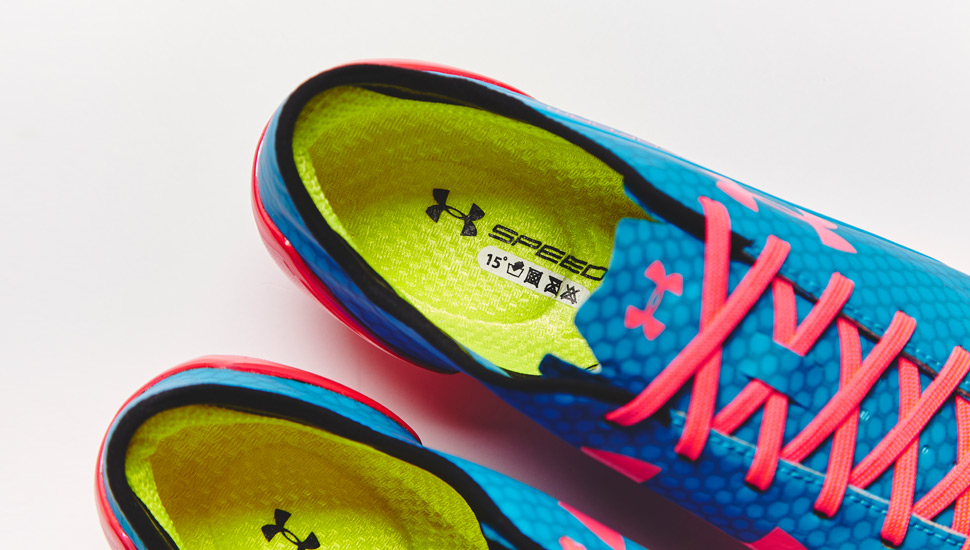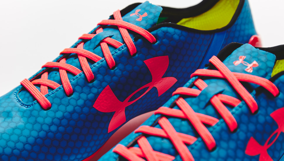 Supporting the debut on-pitch "Emerald" colourway is the equally strong and visually demanding "Blue/Red" combo as Under Armour bring their SpeedForm technology from running into football.