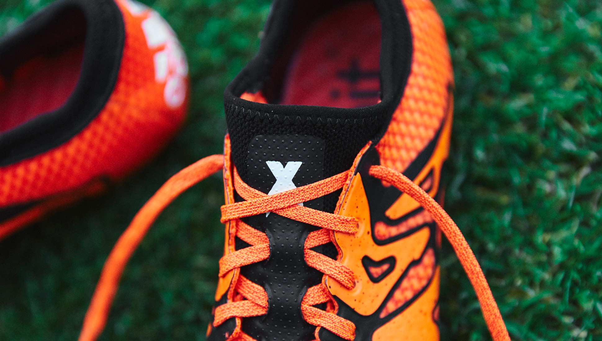The adidas X15+ Primeknit is a boot whose differences from the standard version aren’t easy to spot from anywhere beyond about 2 yards. The Primeknit material for the upper does have a certain look to it that gives the material away, but it really is so intensely orange that the Primeknit blends together a bit. The design around the midfoot of the boot is the same as what we have seen before and the adidas logo on the heel also remains, but the tongue is a bit of departure from the standard boot. The Primeknit tongue has a loop that sits on top of every section where the laces cross, and it allows the “X” branding on the tongue to stand out a bit more (and makes the tongue look much more pronounced). Everything else (including the soleplate) is exactly as what you would find on a standard synthetic X15.
