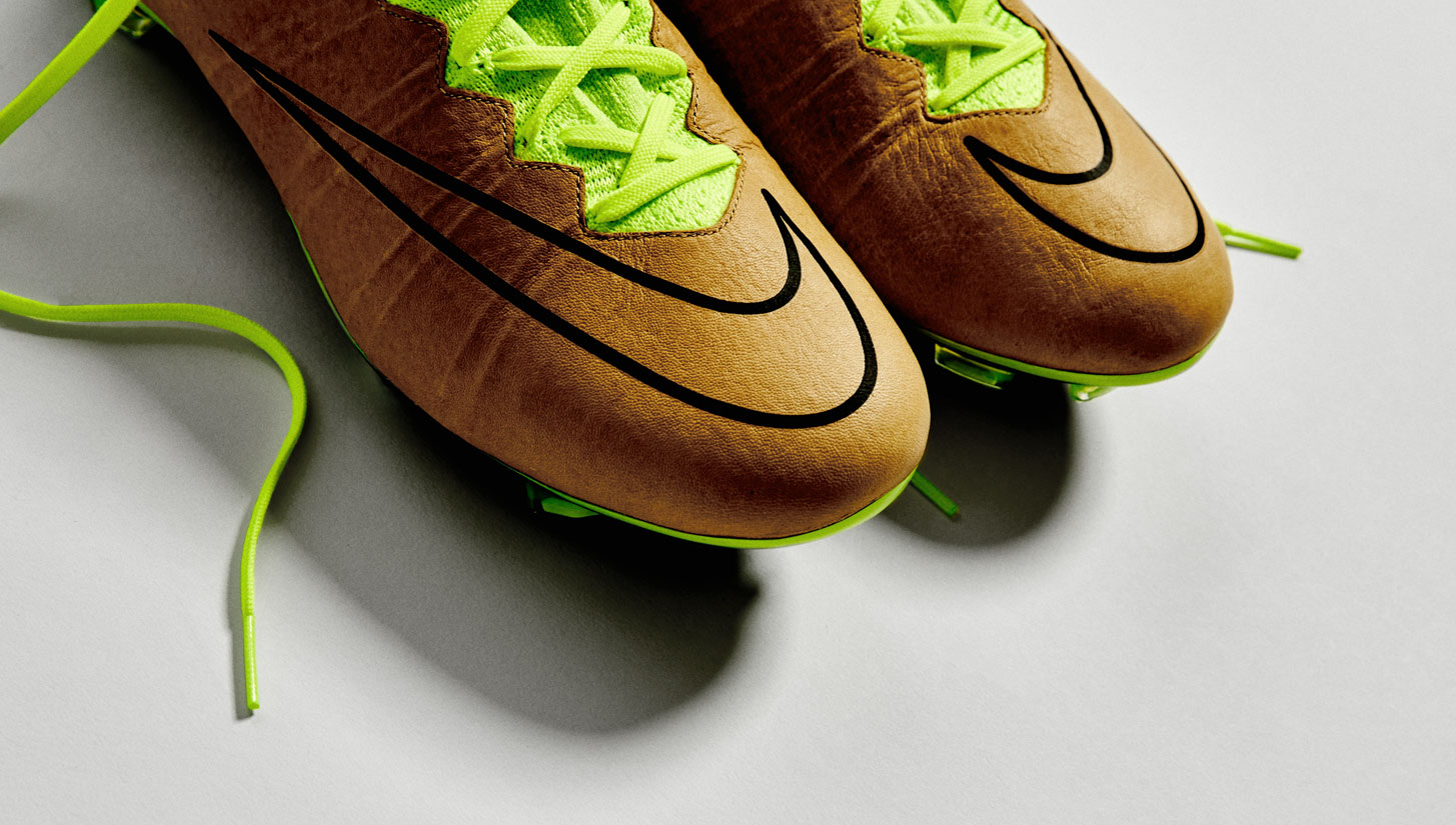 When Nike unveiled their premier Tech Craft Pack in August this year it acted as a window of opportunity for players to trial the brand's Flyknit technology without having to sacrifice a leather feel. The Superfly, Magista & Hypervenom all became versatile due to an added layer of leather fused to the upper of the boots where contact is made with the ball, and now that upper is plastered in an unlikely combination of Volt and Canvas.