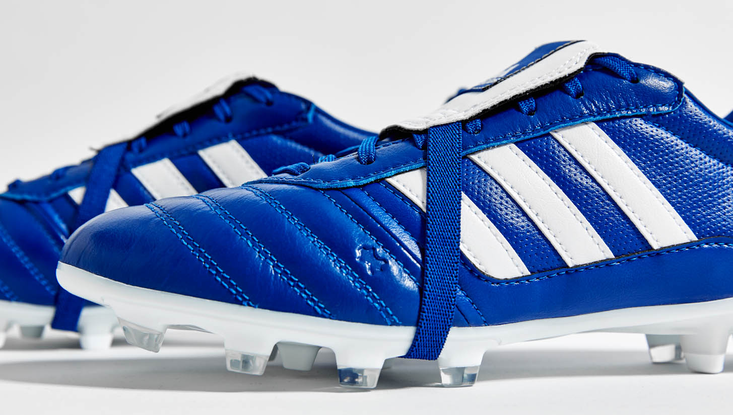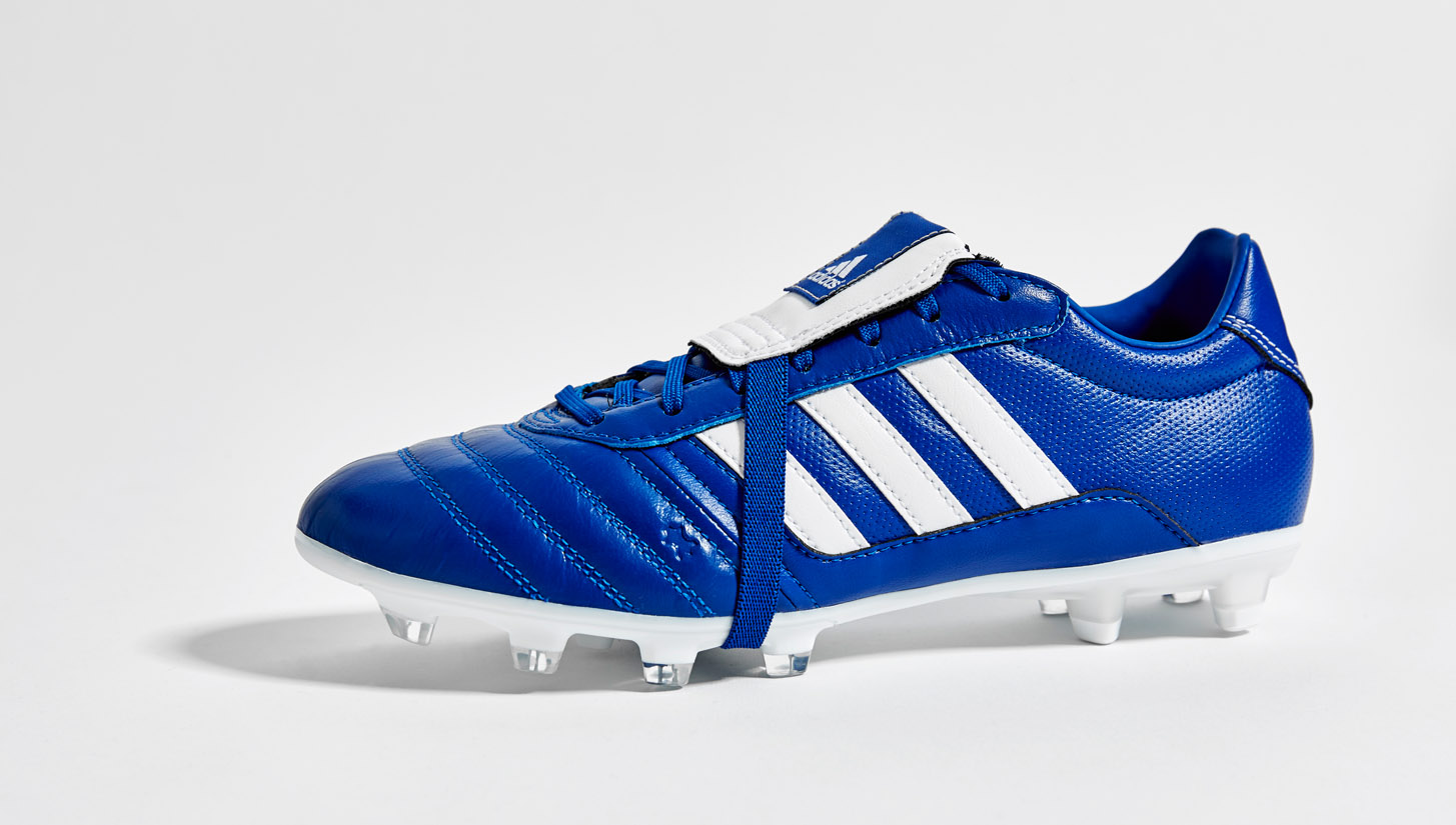 adidas revisit the first generation Gloro to slap a healthy helping of blue and white on the heritage silo. A boot that boasts a fold-over elasticated tongue, a feature that acts as a flying flag for legendary adidas football boots.