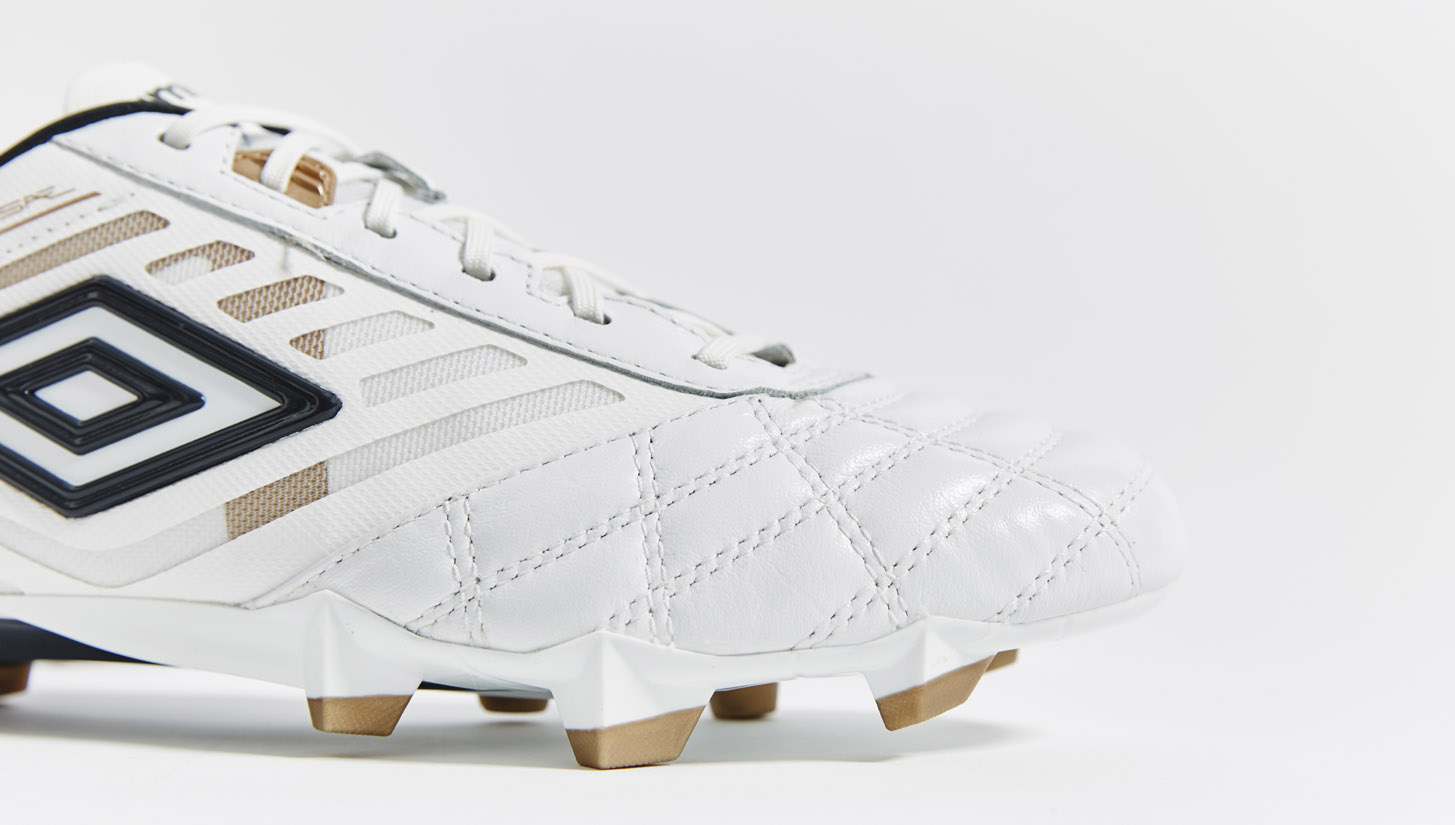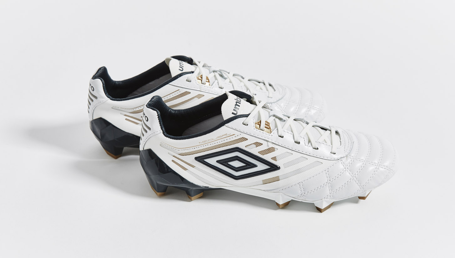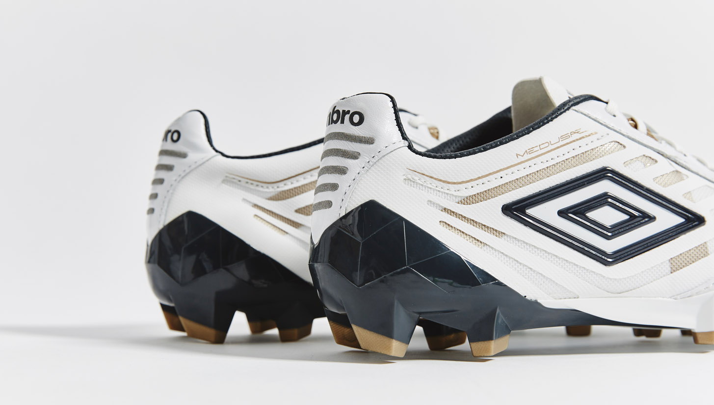 Umbro make it a hat-trick of Medusae colourways with the introduction of a "White/Carbon/Gold" combination for their youngest silo.