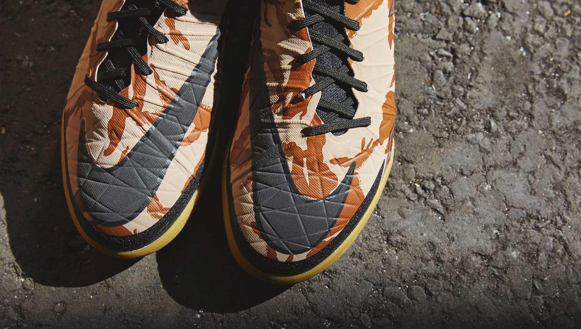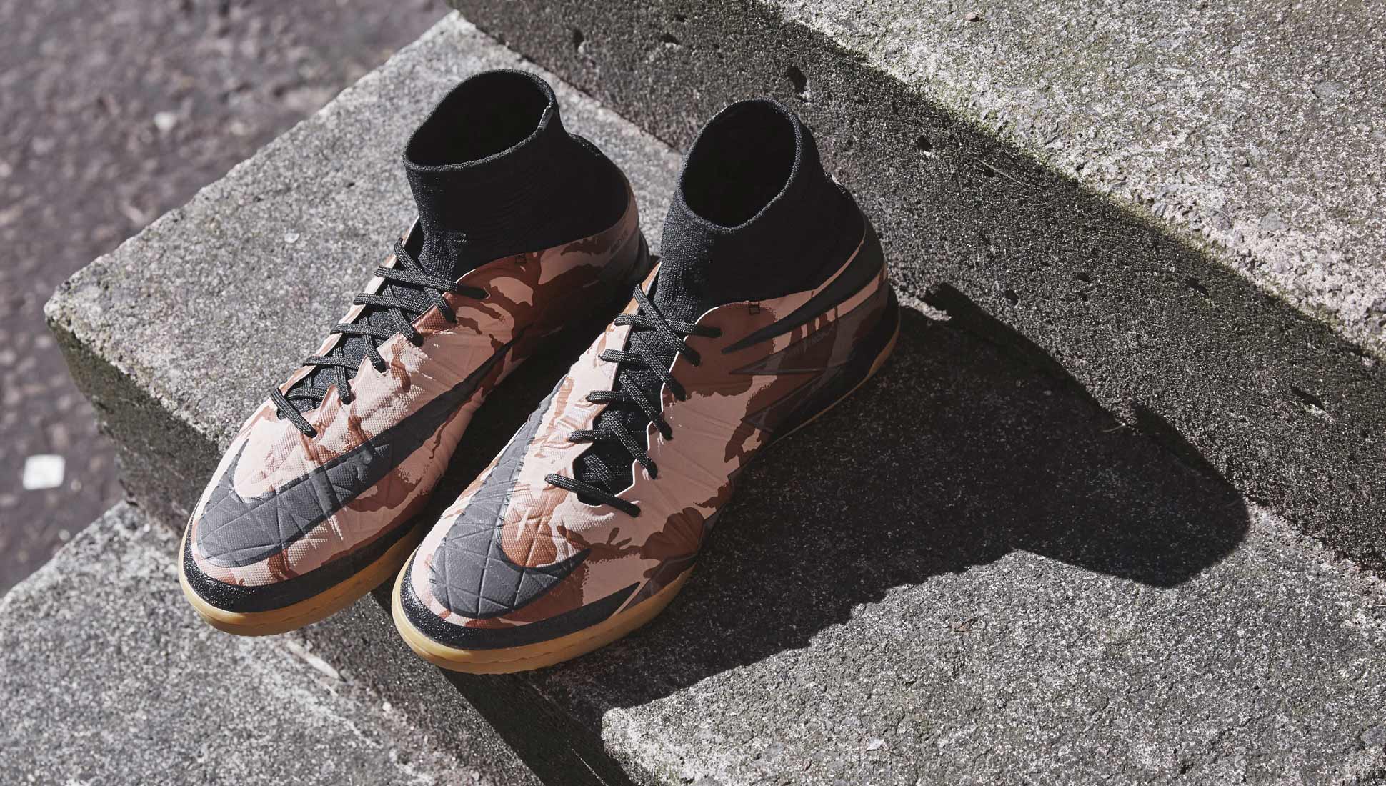 The brown gum sole complements the HypervenomX Proximo more so than it does with the other silos but the collection adds another sense of diversity to the FootballX line-up. Replicating the vibe of the military-esque Nike Camo Football Boot Pack, the FootballX pack will please the growing pool of street and court players, who have been spoilt for choice by Nike's upsurge in releases this season.