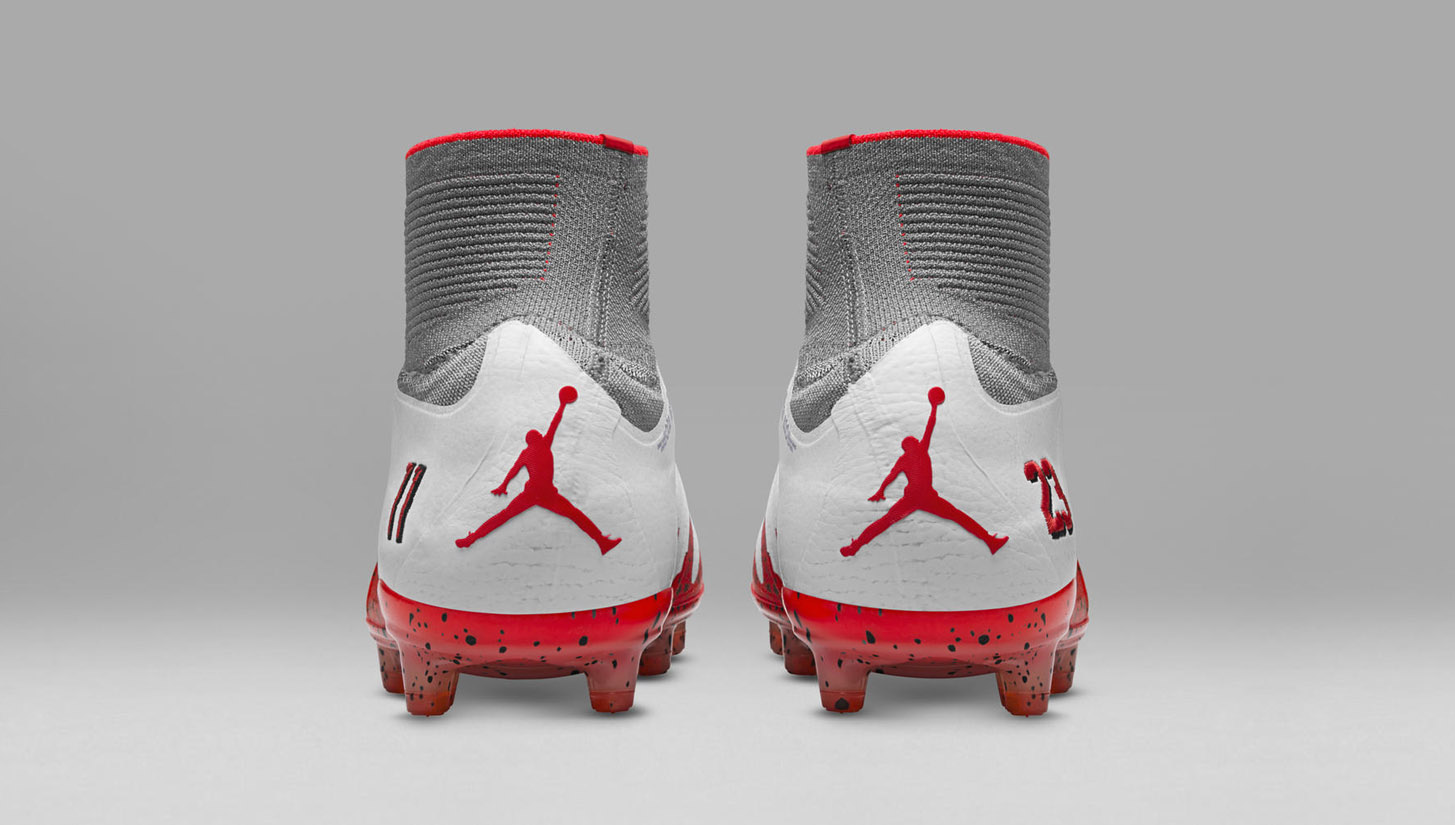 The Jumpman logo appears again underfoot and the initials of Neymar Jr.’s son (“DL”) appear on the laces, as does the icon of the Brasil flag. On the previous edition it was Neymar Jr.’s Brasil number, 10, that appeared on the lateral side of the left boot, but on the "white/red" update his Barcelona number, 11, is featured. The number 23 is on the right boot of both colourways in homage to Jordan and the sockliner and packaging feature a lock-up of Jordan and Neymar’s logos, while the boot heel features the Jumpman exclusively.