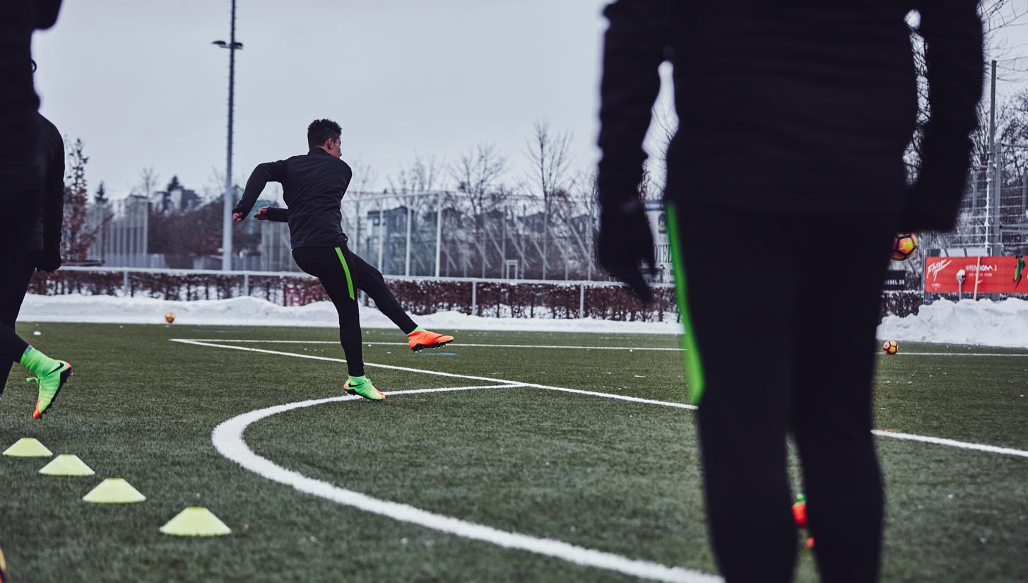 Almost four years on since the Hypervenom was born on the sunny beaches of Rio de Janeiro, and things were a little colder for the arrival of the third-generation boot as we joined Nike in the Munich snow for the launch of the Hypervenom 3. Nike don't do half measures and their first attack of 2017 left the ball in the net and a Swoosh in the snow.