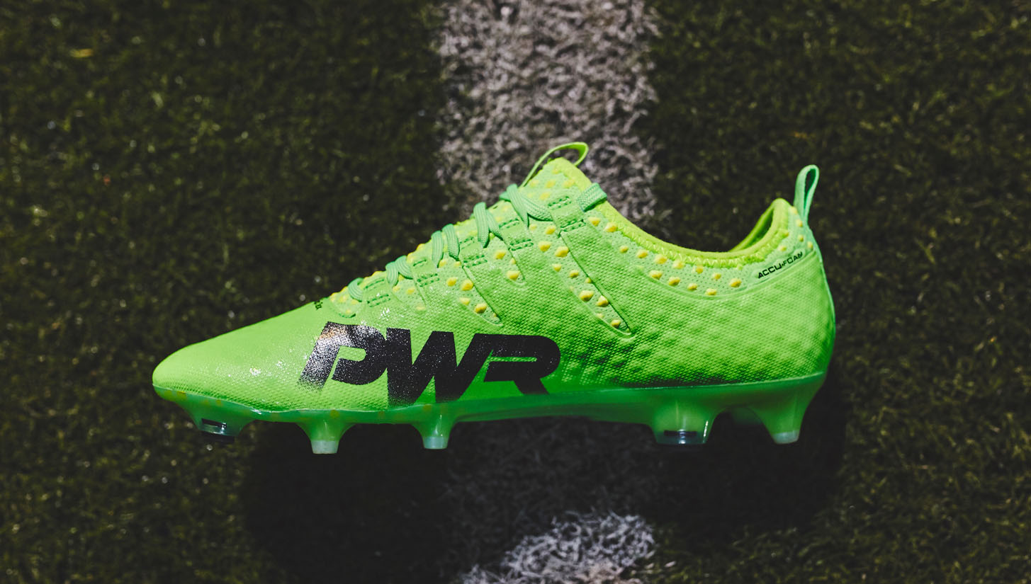 PUMA strip off the Camo suit to unveil the official launch colourway of the next-generation evoPOWER Vigor 1 in a bold "Gecko Green" display. A number of key technology changes ensure that it's the biggest overhaul yet for the evoPOWER series – a silhouette that keeps power and accuracy at the heart of the design.