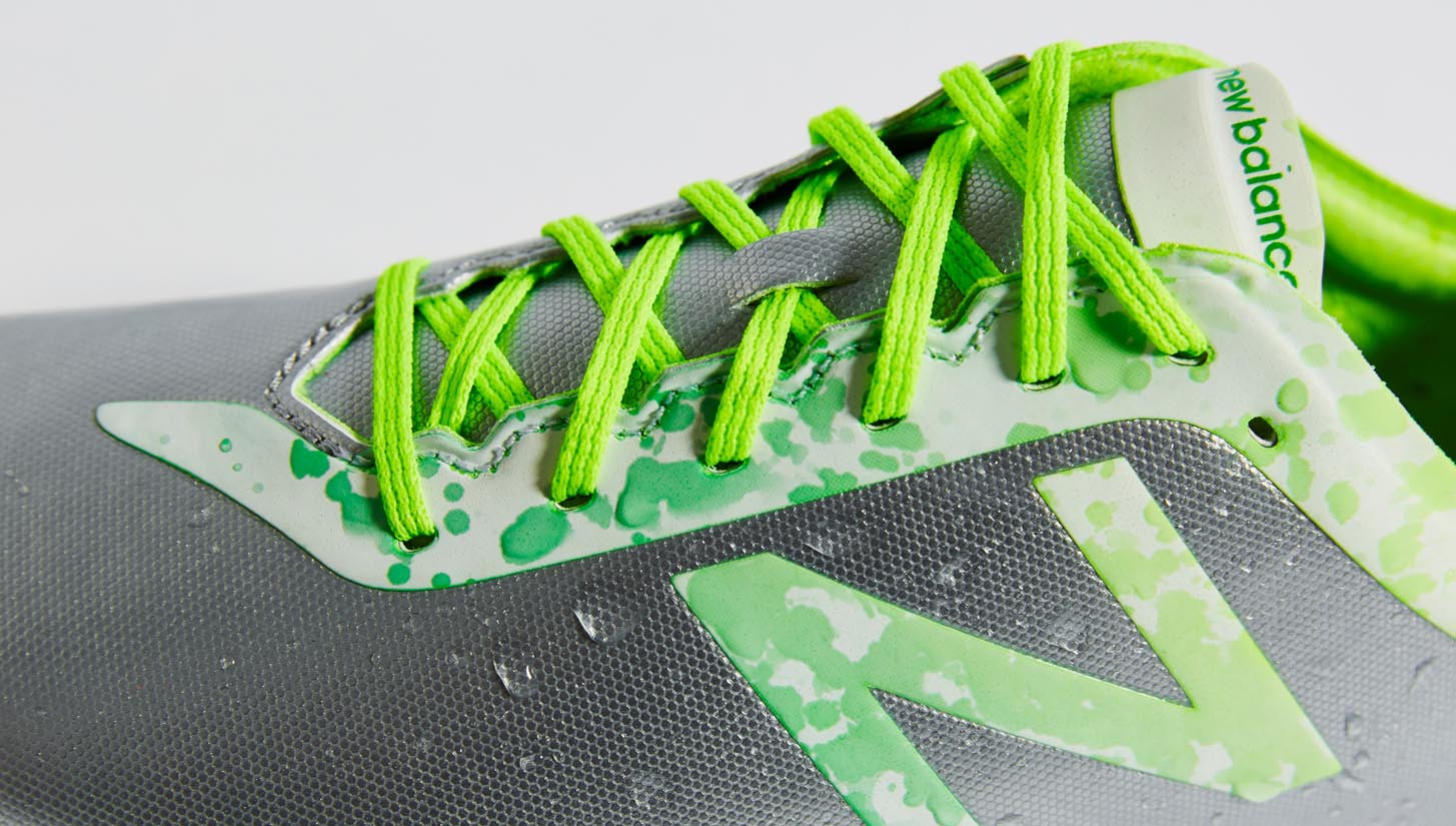 The "Hydra" edition of the Furon 2.0 features a water reactive upper meaning that the white New Balance 'N' branding and matching trim on the upper react when struck by water and change colour from white to a vivd cactus green in an unusual but impressive visual display. Lime glow studs and mirroring laces combine with a metallic-look silver soleplate to finish the dynamic silhouette.