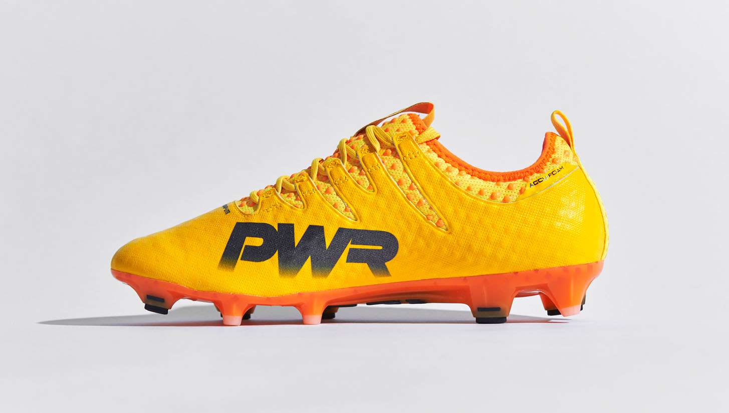 The latest generation of evoPOWER technology was launched in early January and the brand have kept players waiting for an alternative colour option until now. It's another bright offering from the Big Cat, on a silo which we've already called out as the strongest from the evoPOWER collection. Tech wise, it's all about that one-piece upper construction. The AccuFoam upper features a new engineered 3D format that hosts strategically placed PU foam dots, and it's these that create an uneven surface when the foot comes in contact with the ball, increasing precision and power. Boom in bloom.