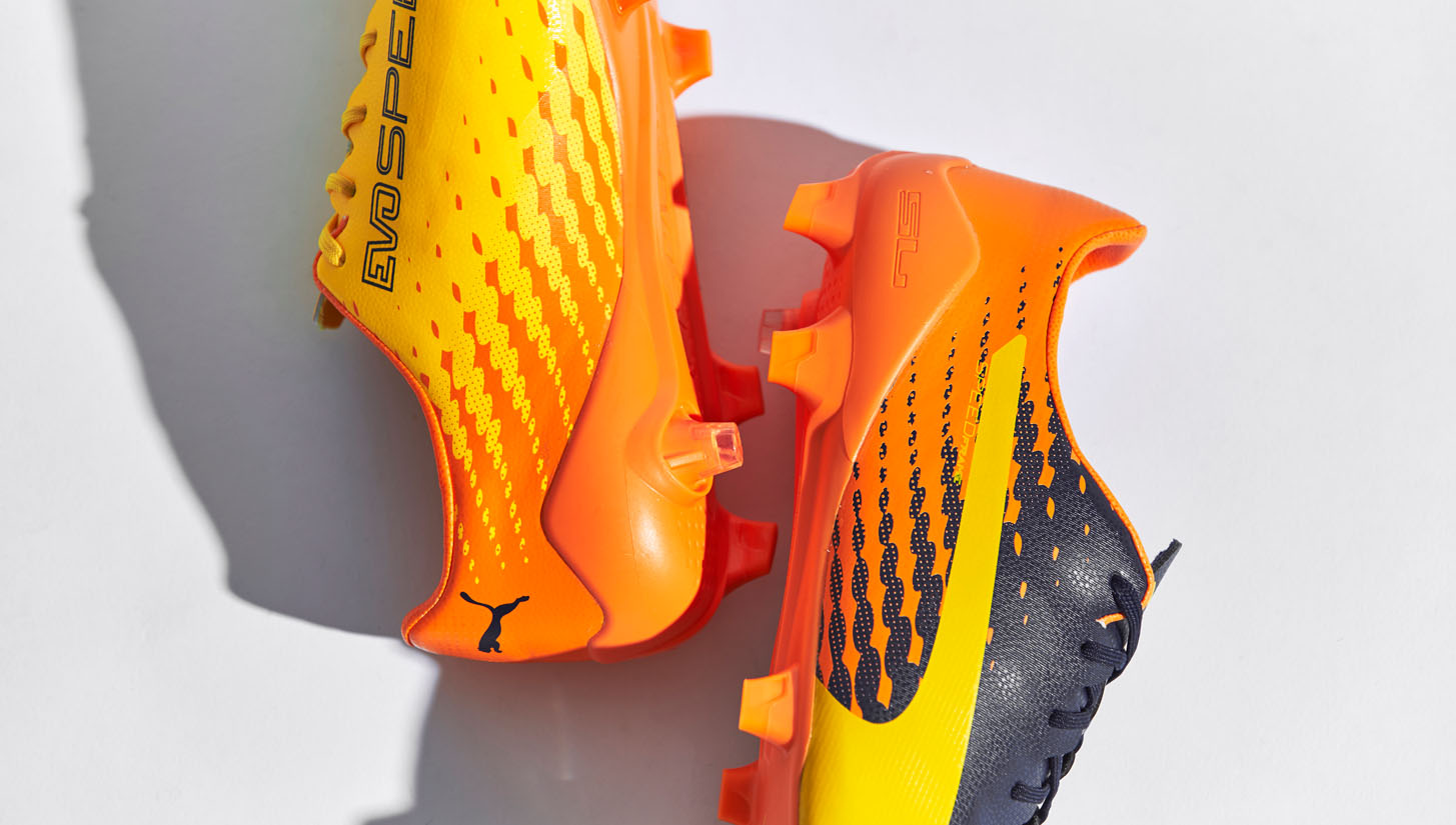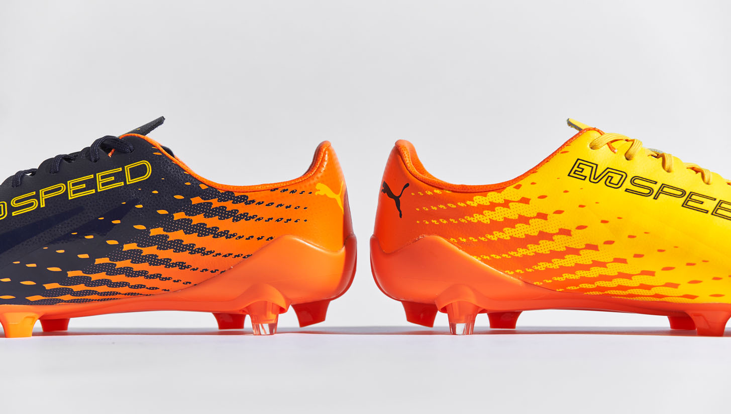 Dropping alongside a matching evoPOWER Vigor 1 colourway, the latest installment of evoSPEED paint will appear on the feet of contract PUMA speedsters as the next official on-pitch edition – meaning the likes of Sergio Aguero, Marco Reus and Antoine Griezmann will be switching into the striking "Ultra Yellow/Peacoat/Clown Fish Orange" combination from this week right up until the domestic season finale.