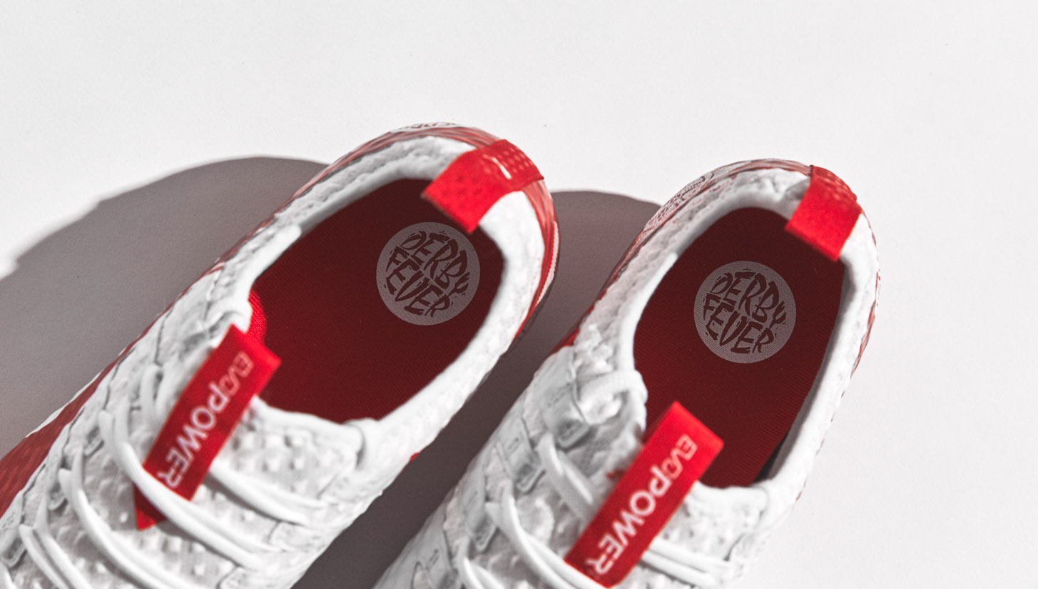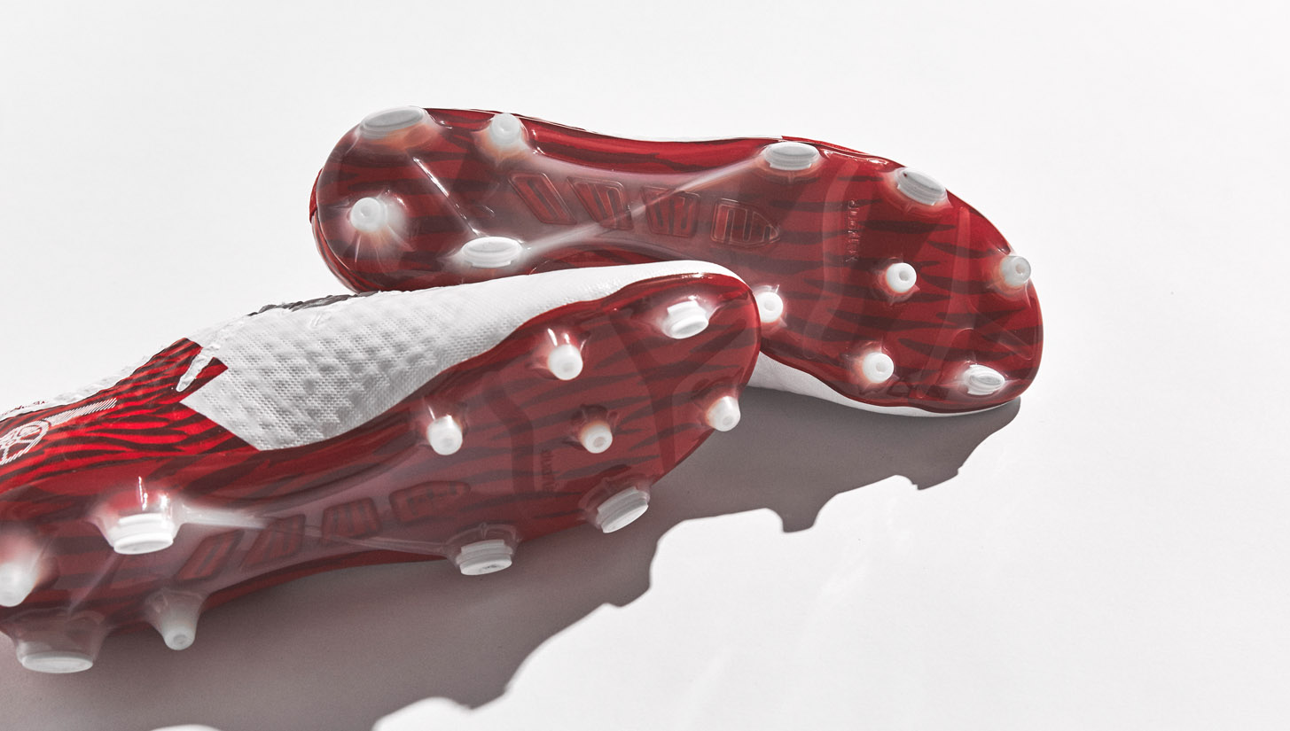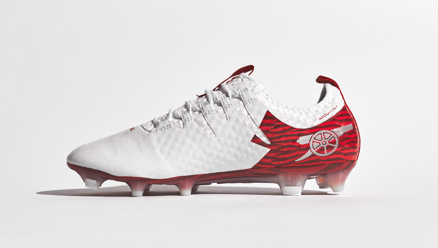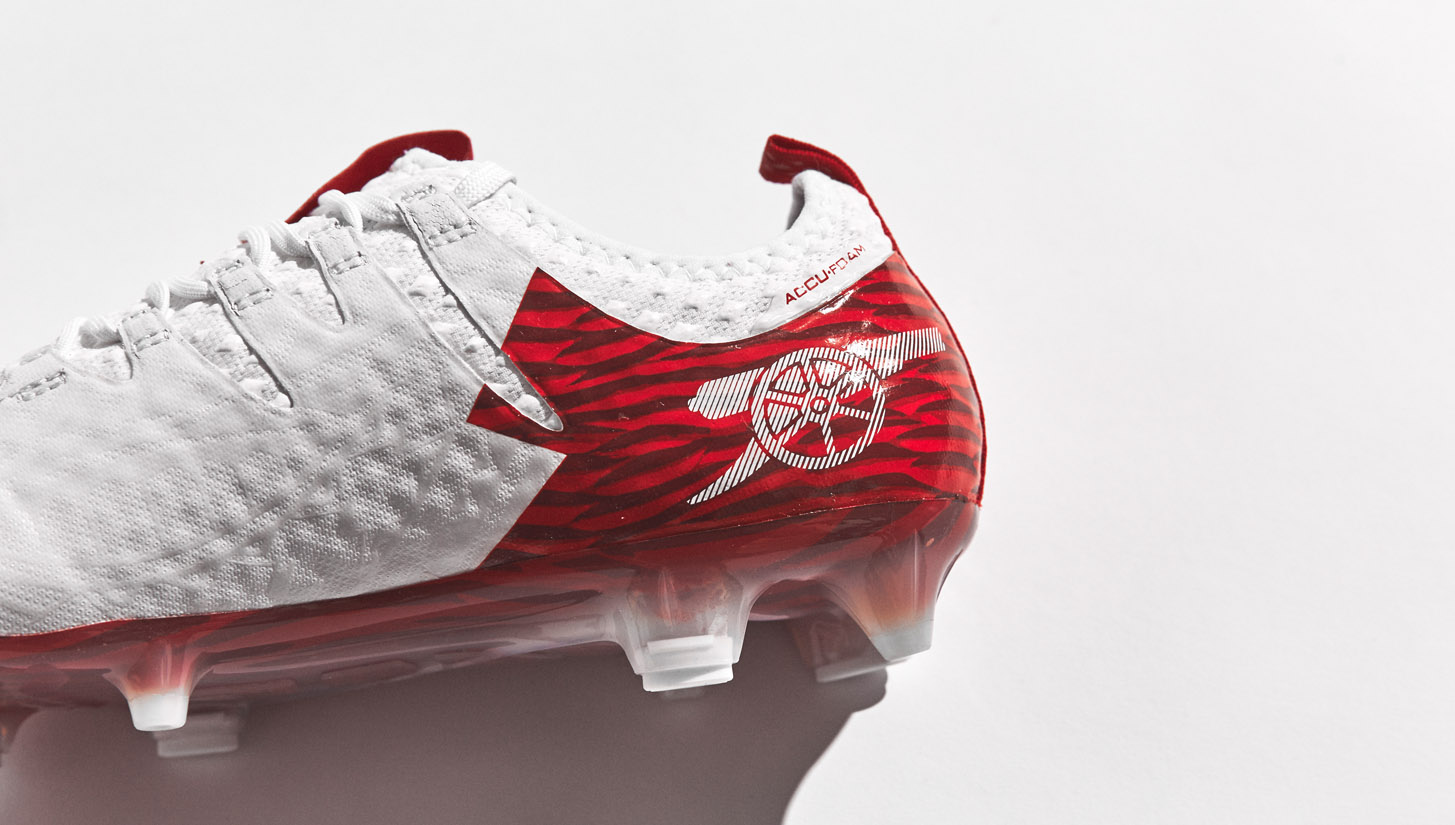 Drenched in white and red to complement PUMA's Arsenal home strip, the Olivier Giroud evoPOWER Vigor 1 features an Arsenal gun on the heel's instep with "Derby Fever" branding at the bottom of the laces, heel and insole. As with the rest of the "Derby Fever" series, the boots will be launched in limited numbers. Smart design. Can't help but think the "Derby Fever" stamp on the insoles would have been enough, but that's just us. Over to the big man.