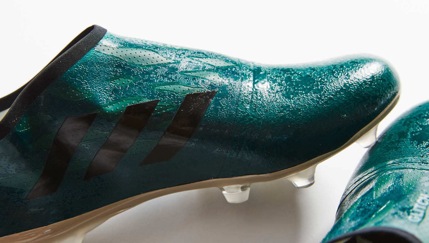 Adidas keep the Glitch hype pedal to the metal with a fresh batch of outerskin drops that make up the "Corrozone" collection. Lean in green, the latest skin offering comes wrapped in low-key vibes on a boot that's equally as low-key on the market but anything but that in terms of design.