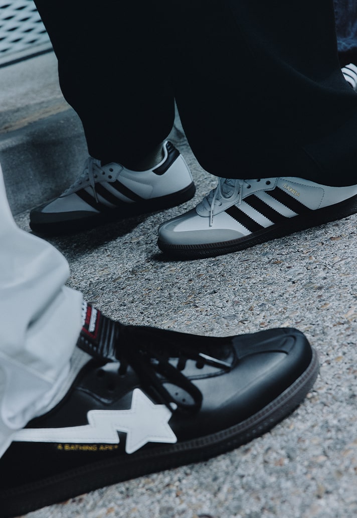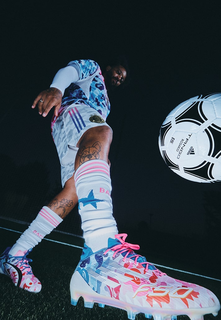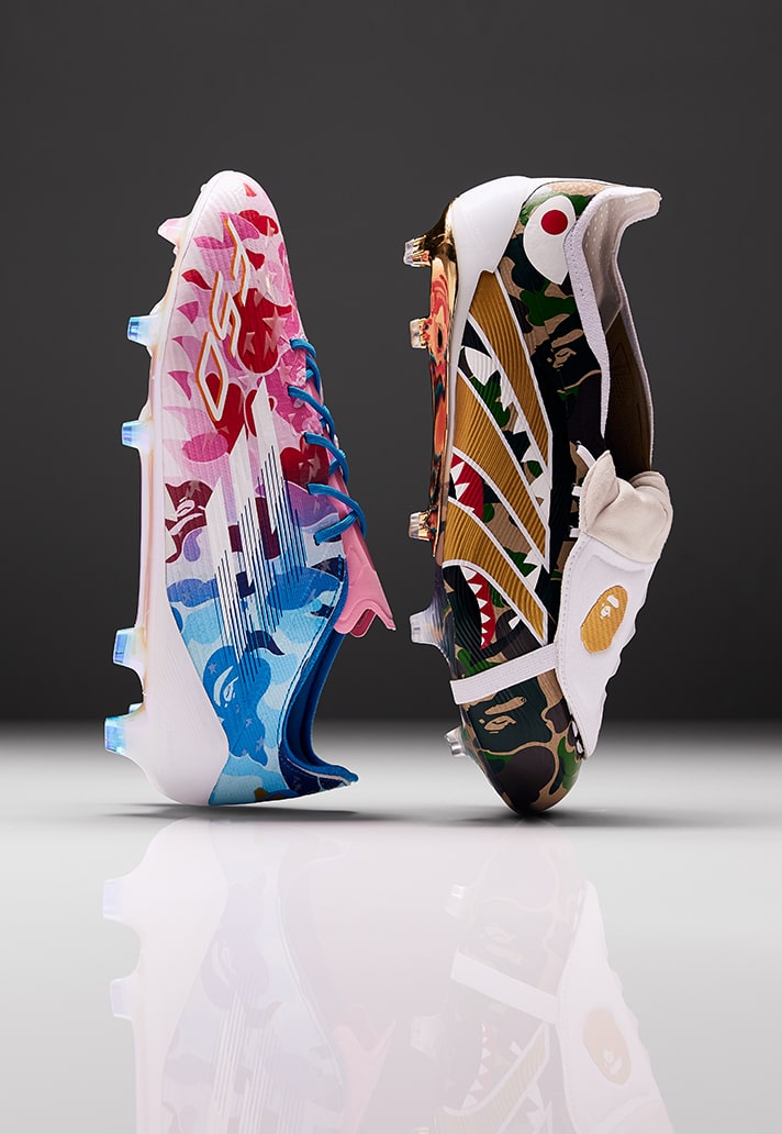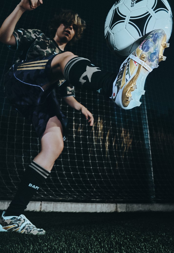 Expanding their collaborative relationship, adidas link up with Japanese streetwear heavyweights BAPE® for a collection that smashes the lines between football, fashion, and culture. The collection includes the Predator Elite FT, the F50 Elite, the adidas Originals Samba, and a host of apparel pieces and accessories.