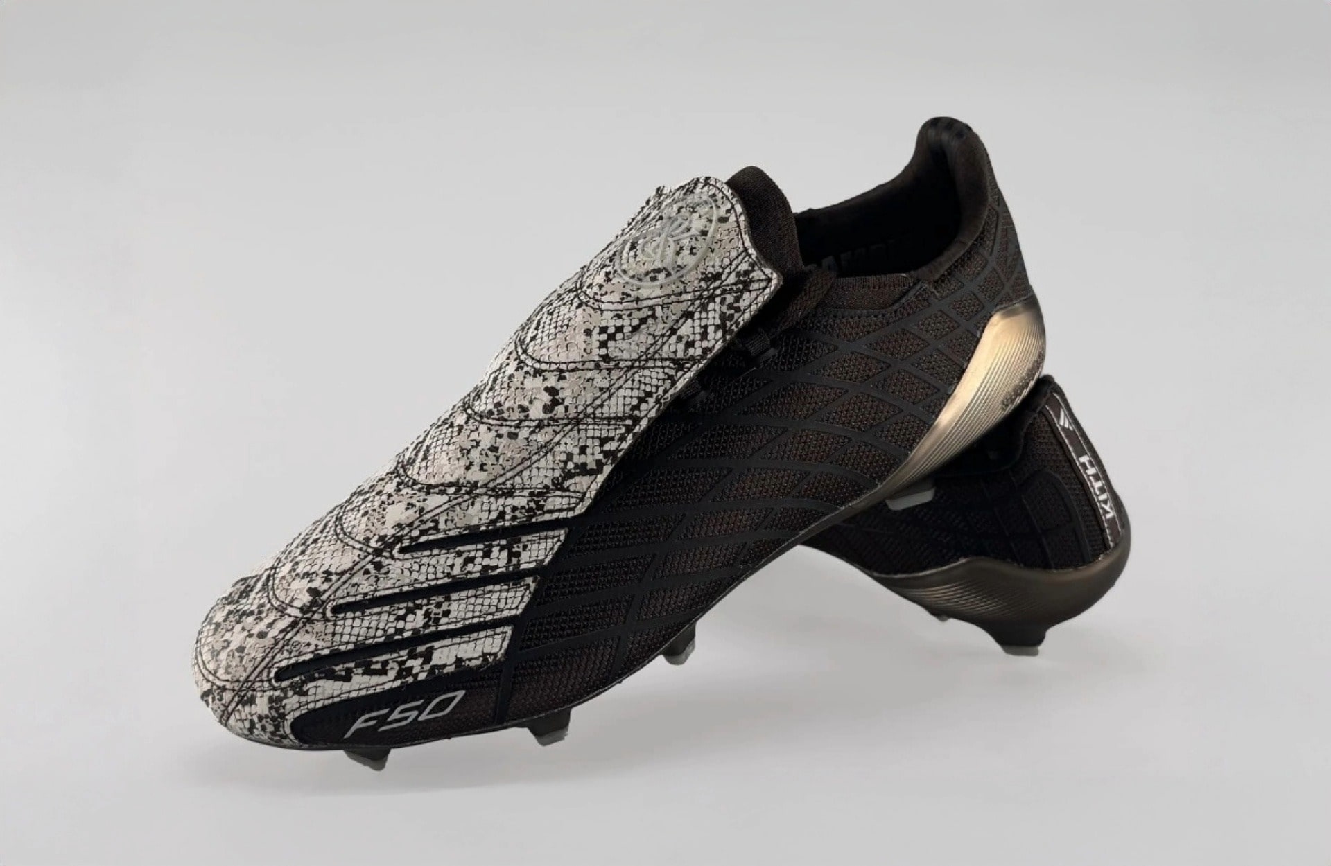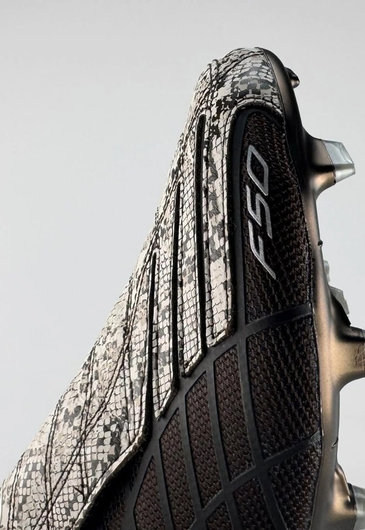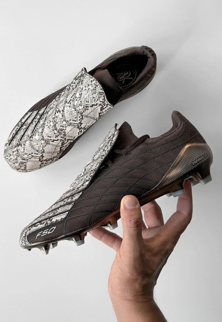 There's been some strong rumours of a return in some form for the iconic F50+ 'Spider', which originally debuted back in 2004. Now we get our strongest hint yet, with the tease of a very special edition, produced as part of the adidas x Kith partnership. The boot itself is laced with luxury. That signature spider-web graphic comes cloaked in a dark brown upper, set off by a snakeskin-patterned lace cover that screams premium execution. Chrome-like bronze detailing runs across the heel counter, giving the design a regal flourish that elevates the already iconic silhouette. Dual branding – adidas and Kith – seals the collab with authority.