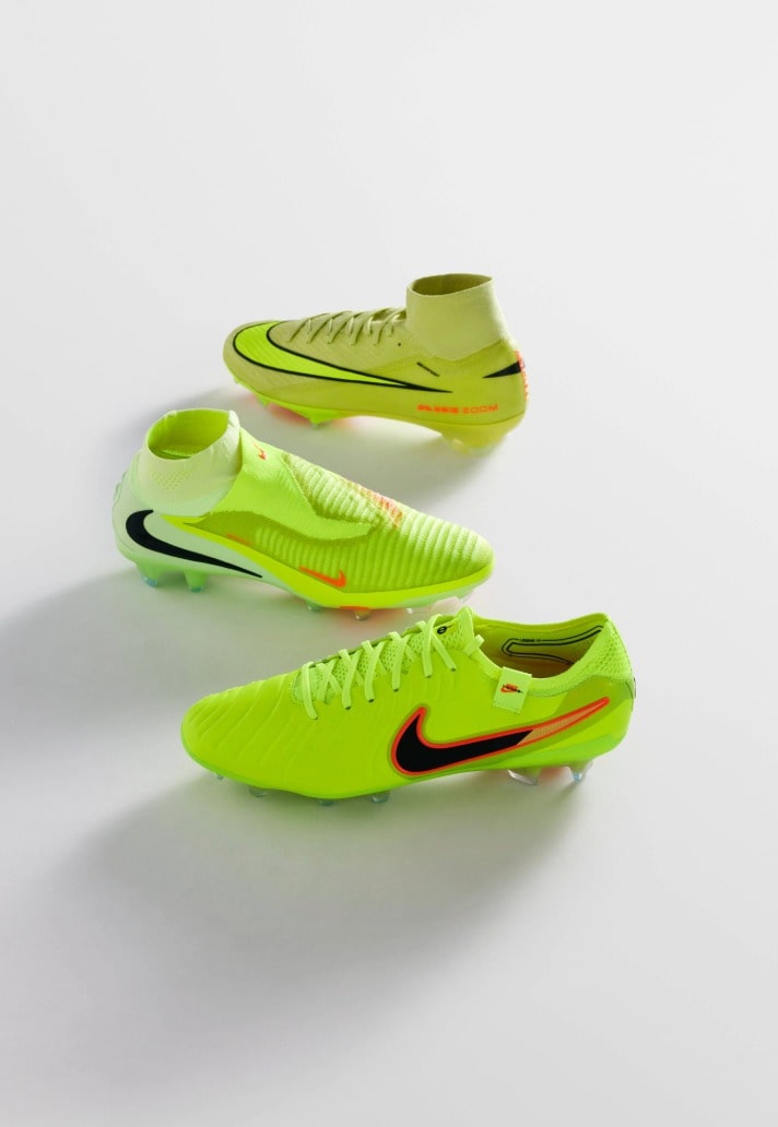 Nike aren’t stopping to catch their breath, unveiling a fresh group of speed, touch, and precision with the ‘Refresh’ pack. The latest drop sees the Swoosh re-energise their lineup, with the all-new Phantom 6, Mercurial, and Tiempo dressed in a neon-charged look to light up the game.