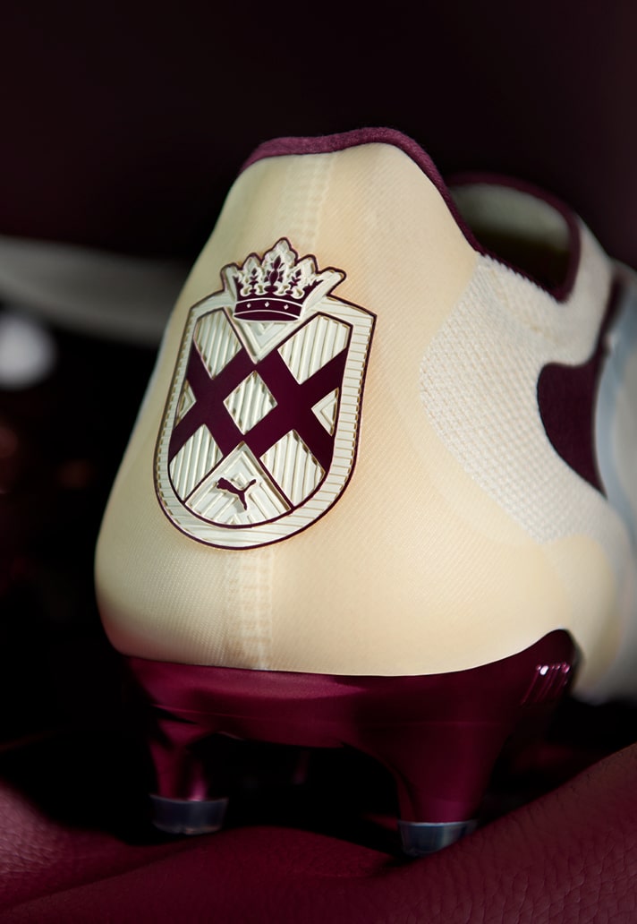 Every detail on this boot tells a story. The golden PUMA Formstrip ripples across the side like armour. The maroon soleplate, rich and reflective, looks lifted straight out of any collector’s dream. It holds that understated royalty that is far too underrated in the modern game.