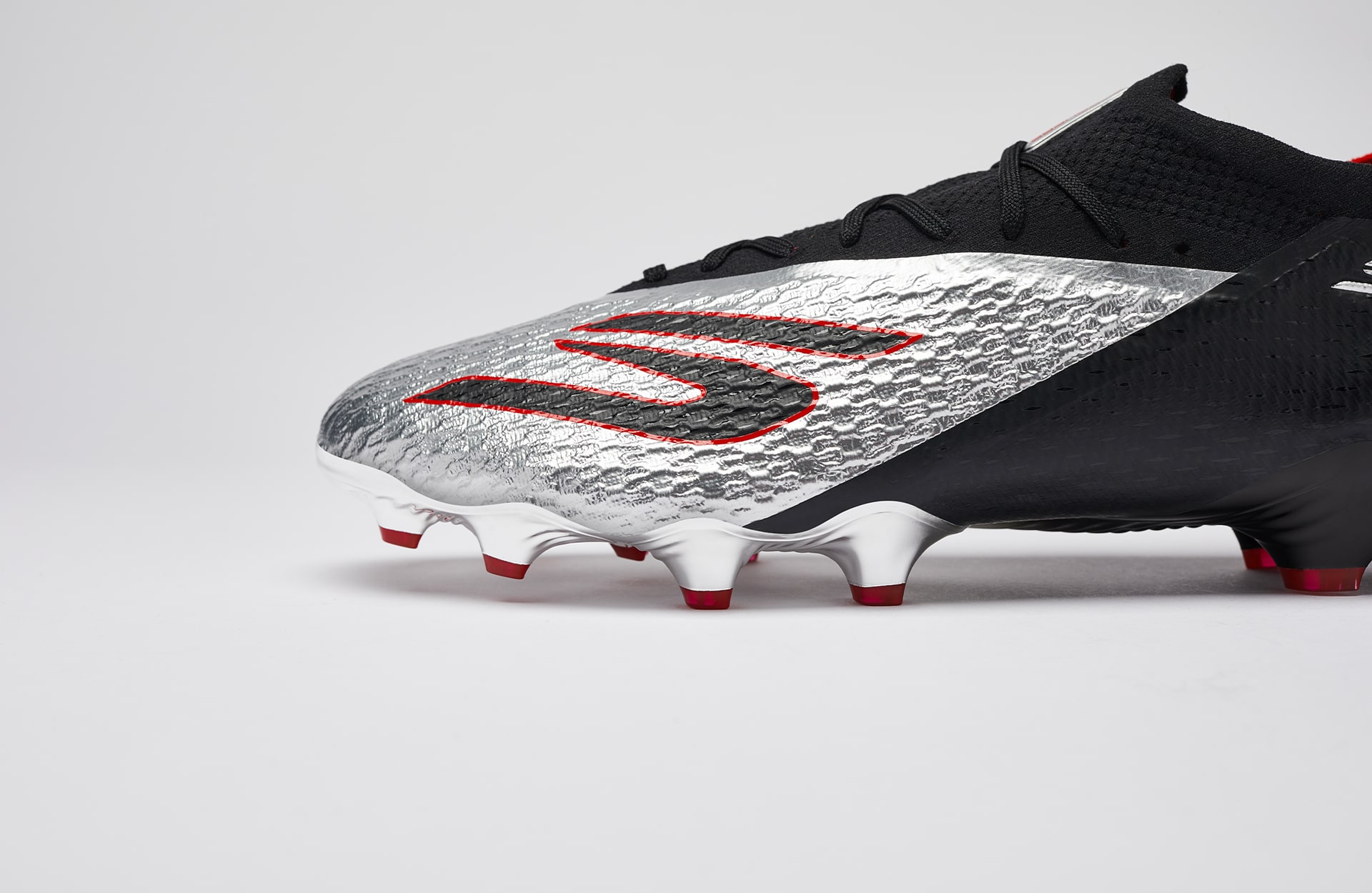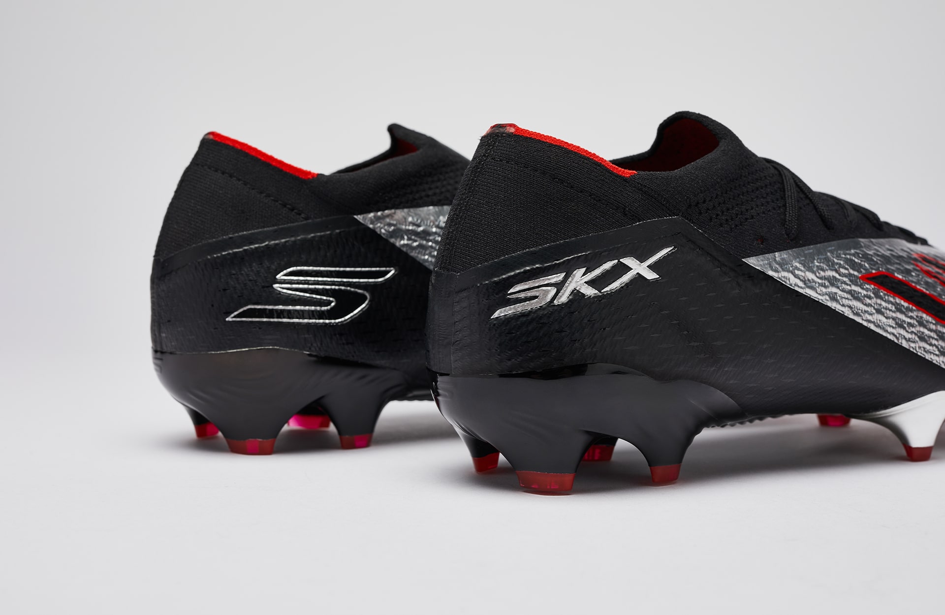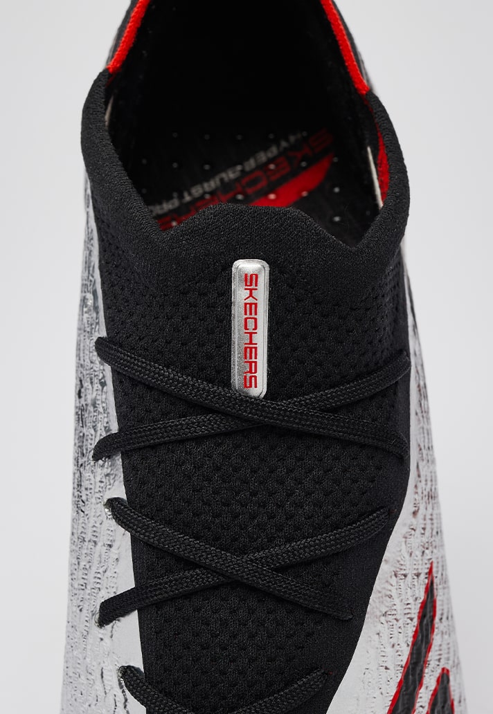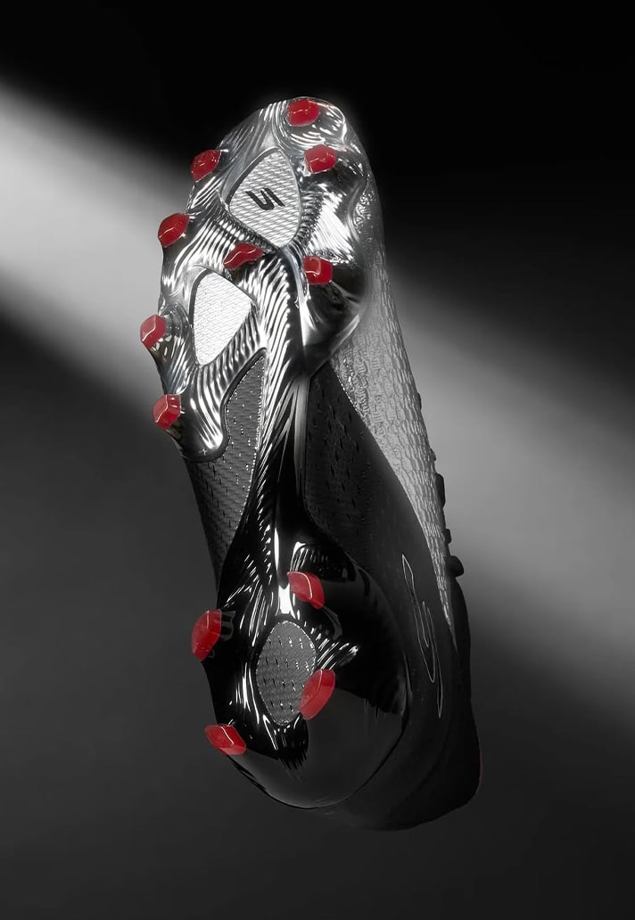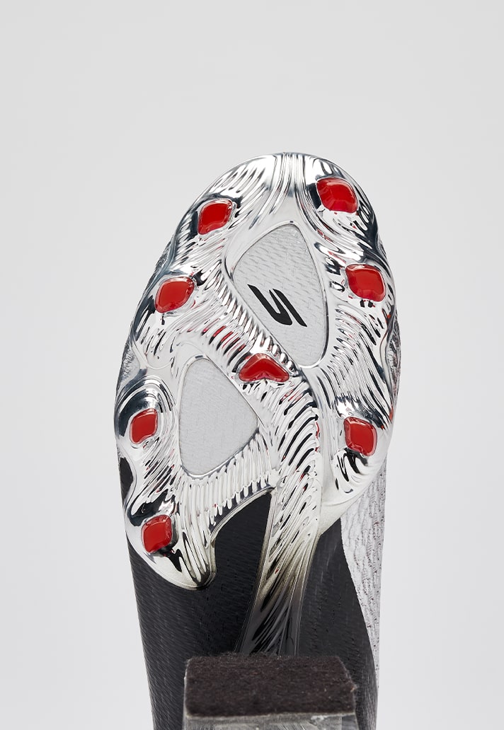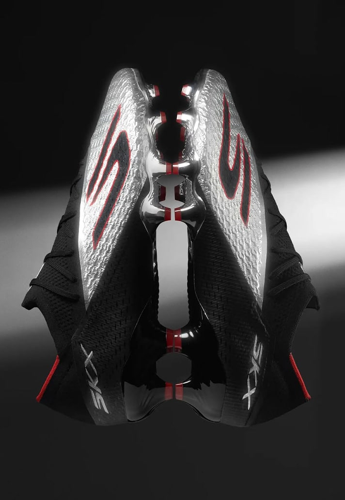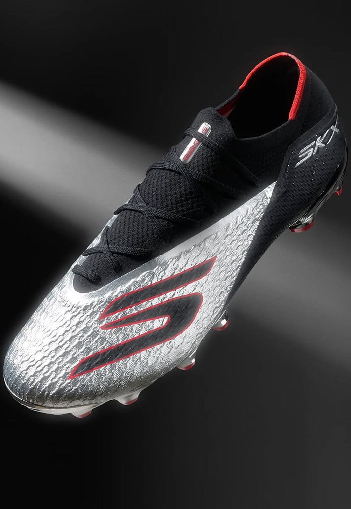 Skechers are well and truly leaning into the chaos and aesthetics of the speed market with this one. After the SKX’s updated generation earlier this year, it has thrown the brand right up there at the top of the boot market. And its no different here. The silhouette stays the same, with aggressive lines and a sculpted undercarriage. But it’s the aesthetics that do the talking here. A mirrored chrome shell upper is wrapped in black and red detailing, catching the light like a weapon. And that’s exactly what it is, a weapon of speed.