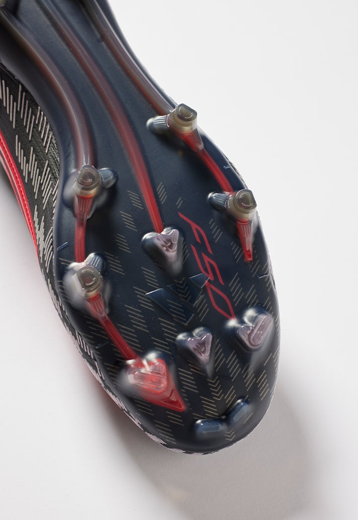 The adidas F50 ‘Immortal DNA’ boots take a slightly different route, but remain firmly on theme. A dominant black upper sets the foundation, while three bold red stripes sweep down both the medial and lateral sides, injecting energy and movement into the design.
