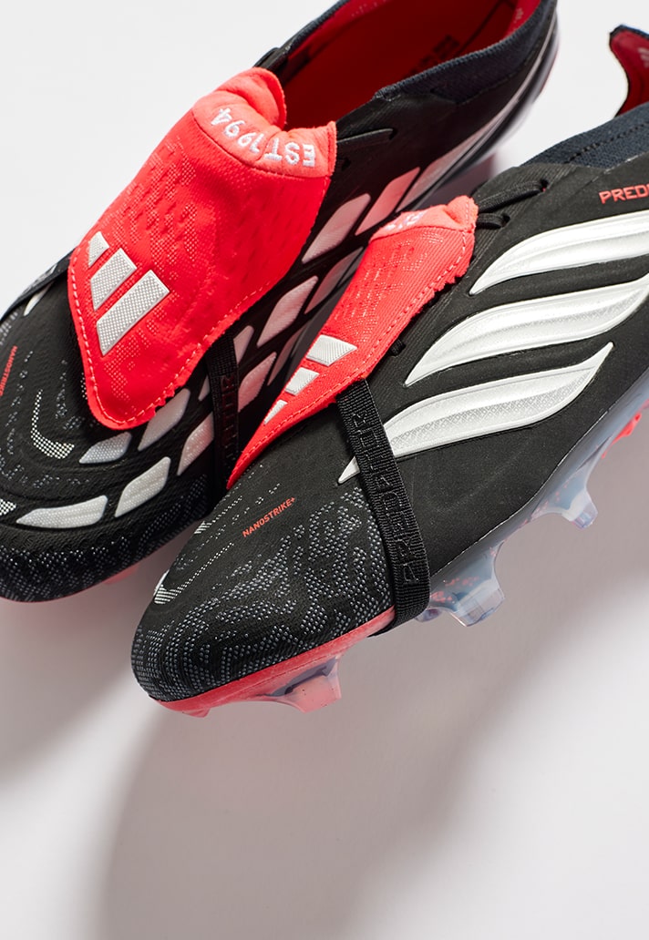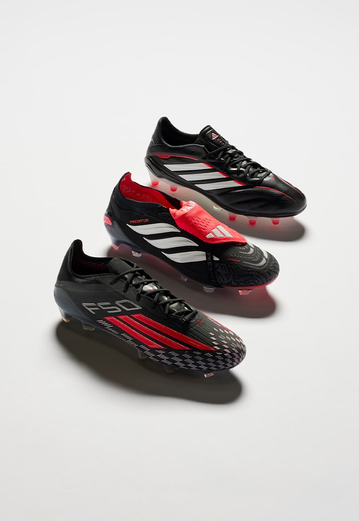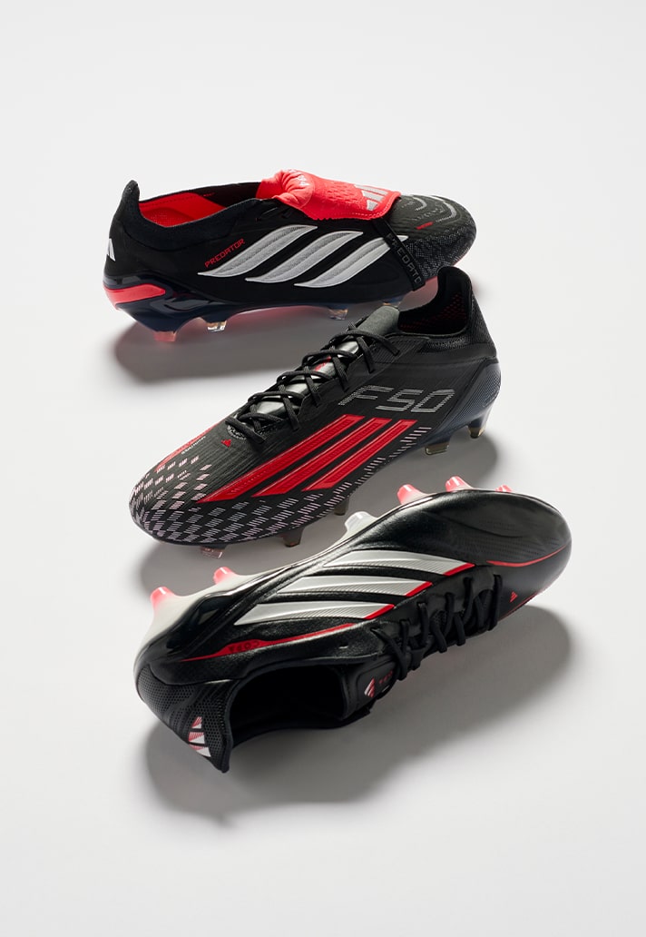 Let’s start where the soul of this pack lives: the Predator. Despite the blackout billing, this is anything but muted. adidas have leaned straight into the archives, reviving the most iconic colourway in Predator history — Black / White / Red — and playing it out exactly as it should be.