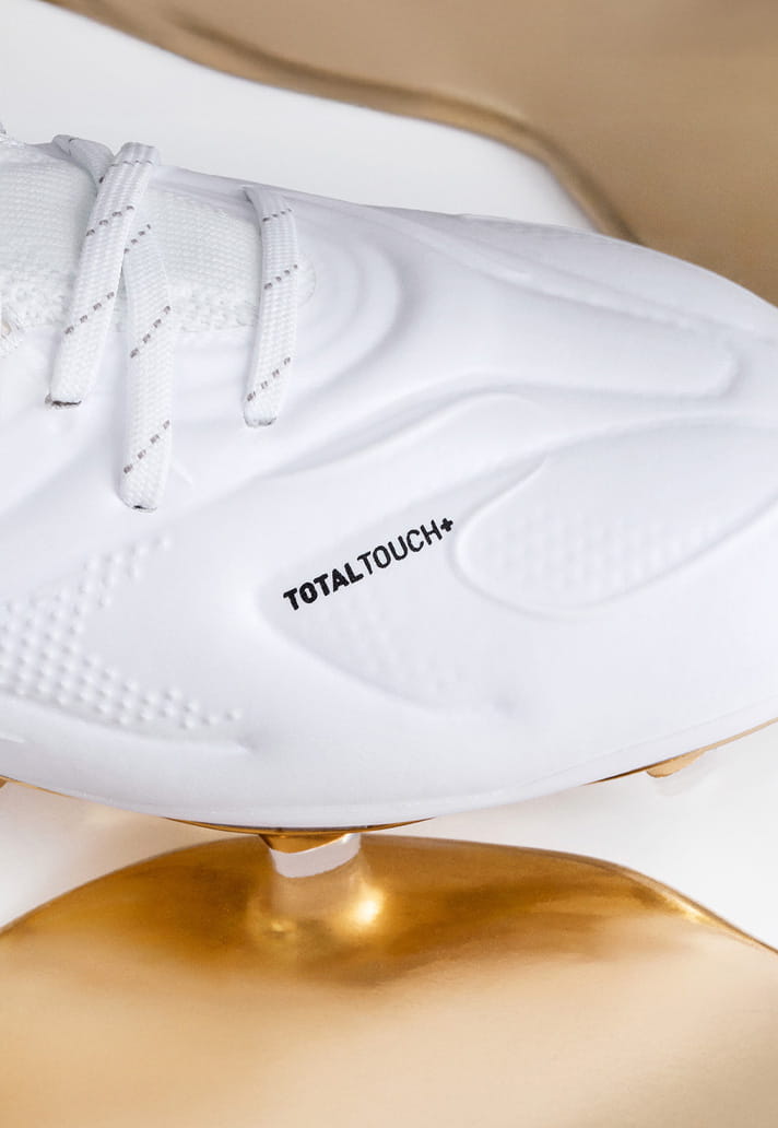 The TOTALTOUCH+ upper delivers that signature KING feel: soft on the ball, resilient under pressure. An engineered knit slip-on construction is paired with cushioned tongue pods, OrthoLite® CustomFit heel padding and a dynamic lacing system, all working together to mould to the foot and keep players locked in from first whistle to last.