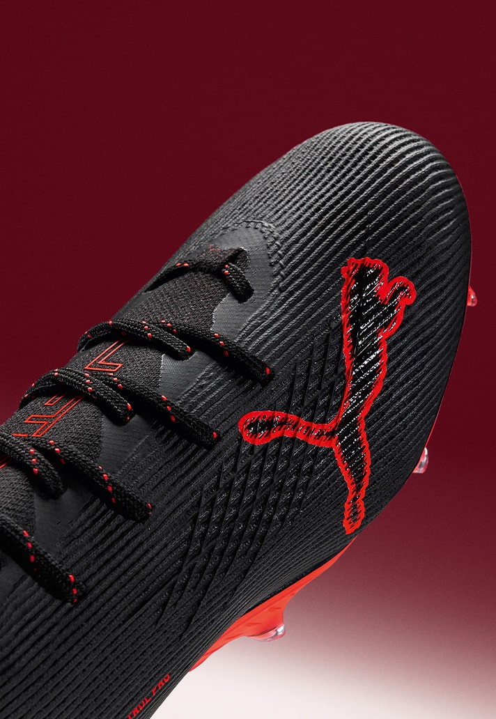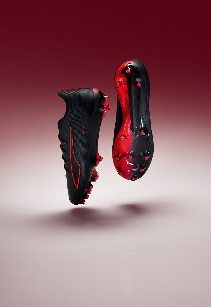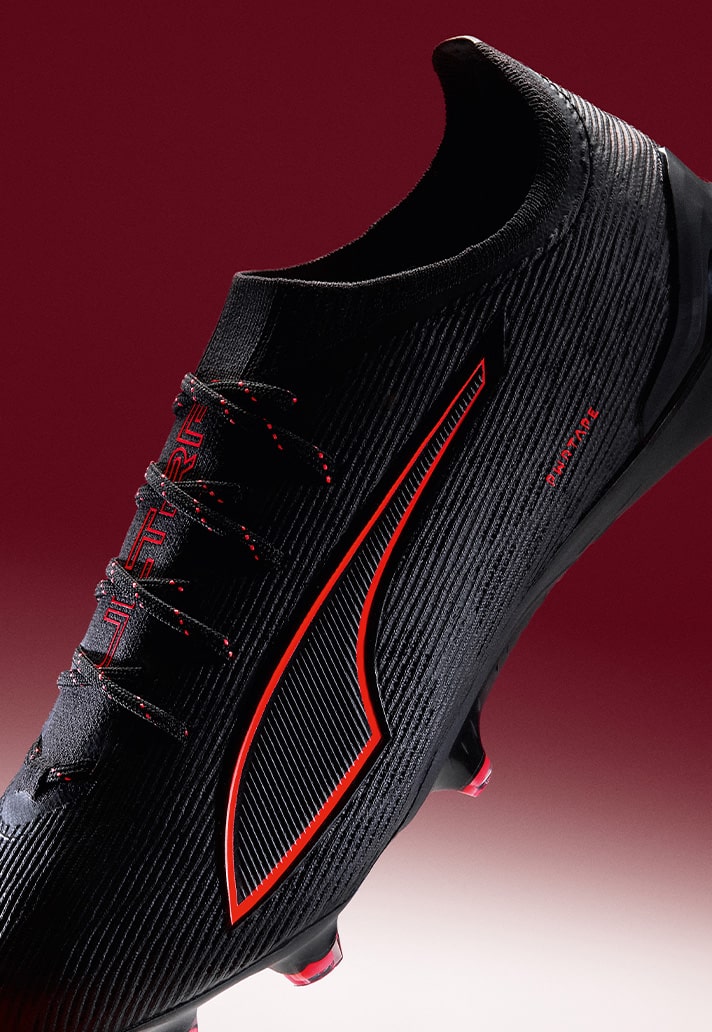 And finally, the Ultra. The speed of the pack. A boot known for vibrant designs and crazy speed. The black aesthetic may calm this one down a notch but it’s still ready to run riot. It’s quietly dangerous, and that’s the scariest type. A lightweight construction as usual, explosive traction and a streamline visual that will leave a wicked mark on the pitch.