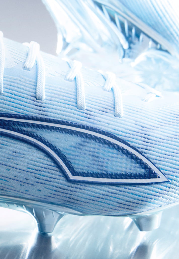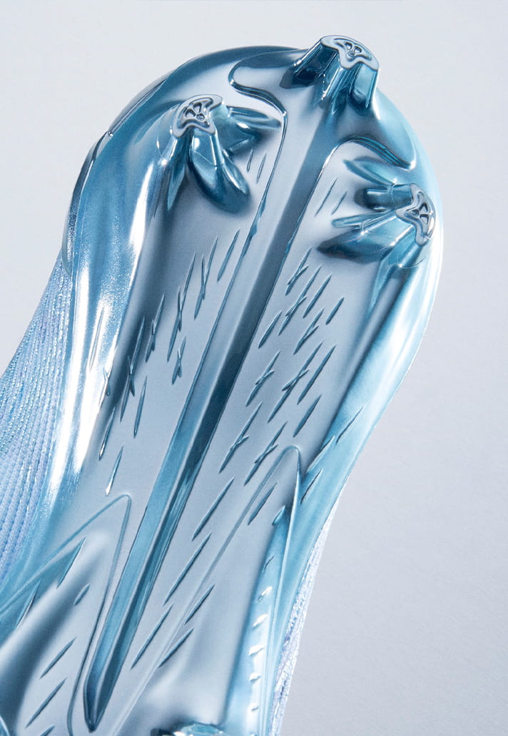 It's a striking, ice‑infused aesthetic that really pushes the silo’s “ultra‑light, ultra‑fast” identity. The sleek, almost liquid-metal finish makes the entire silhouette feel fast even when it’s standing still. Got a lot of time for this look, and sure it will standout on pitch, too.