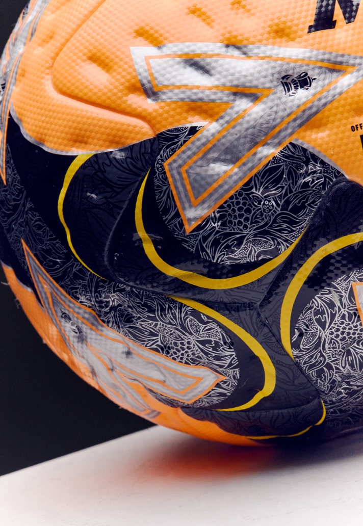 Drawing on the intricate, William Morris–style floral engravings that decorate the famous trophy, the new Emirates FA Cup Ultimax Pro carries those motifs across its panels in elegant, hand-drawn form. The base palette of deep blue is elevated with refined silver detailing, anchored by custom red Delta chevrons — a nod to the competition’s unmistakable branding. There's also the winter version of the ball, which arrives in a bright and bold orange base.